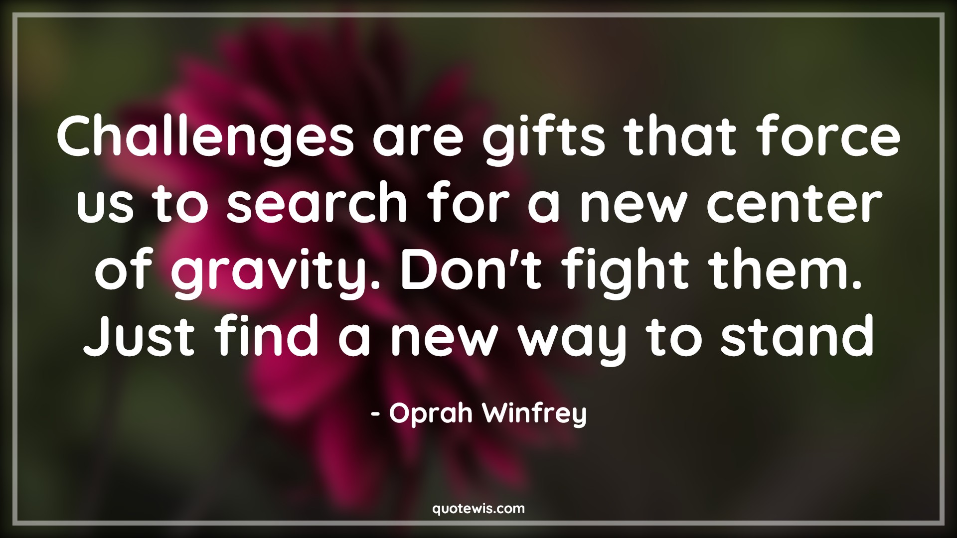 Challenges are gifts that force us to search for a new center of gravity. Don't fight them. Just find a new way to stand