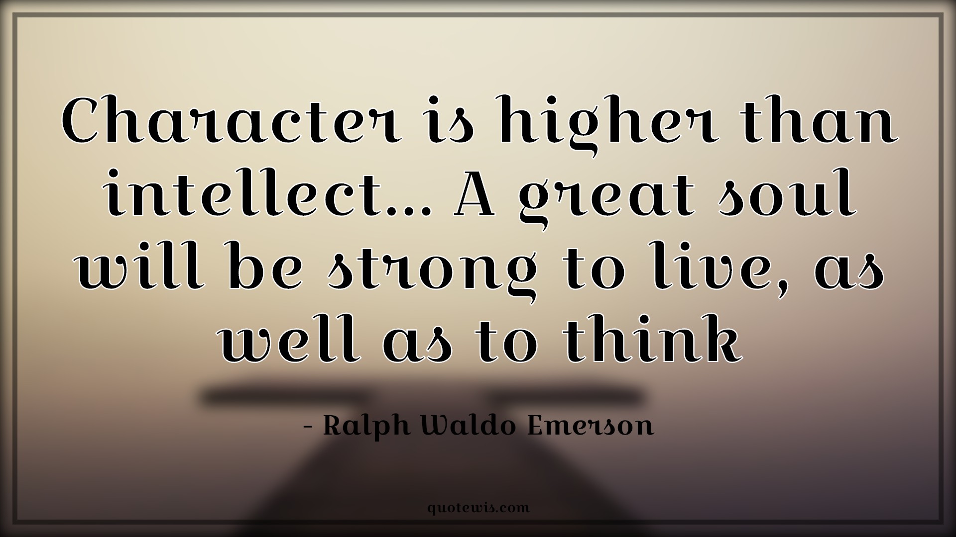 Character is higher than intellect… A great soul will be strong to live, as well as to think