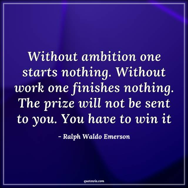 Without ambition one starts nothing. Without work one finishes nothing. The prize will not be sent to you. You have to win it