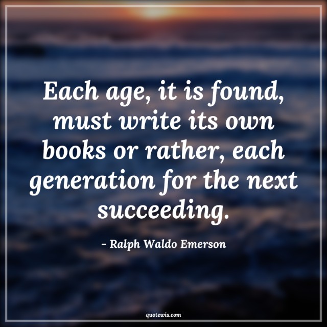 Each age, it is found, must write its own books or rather, each generation for the next succeeding.