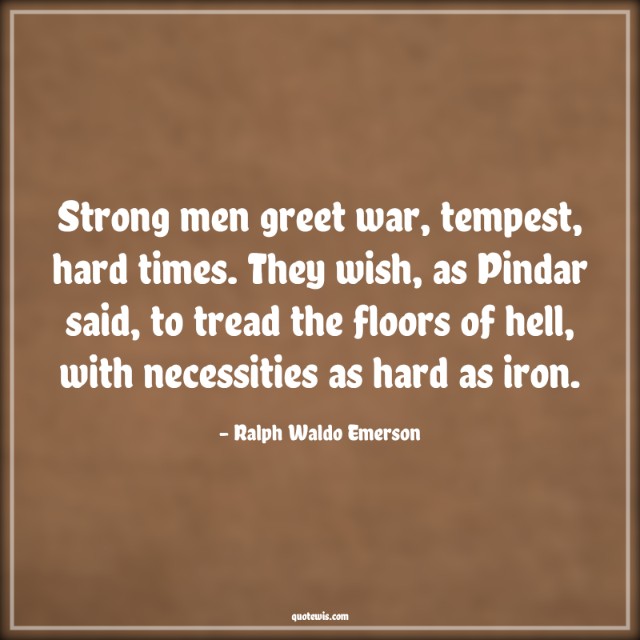 Strong men greet war, tempest, hard times. They wish, as Pindar said, to tread the floors of hell, with necessities as hard as iron.