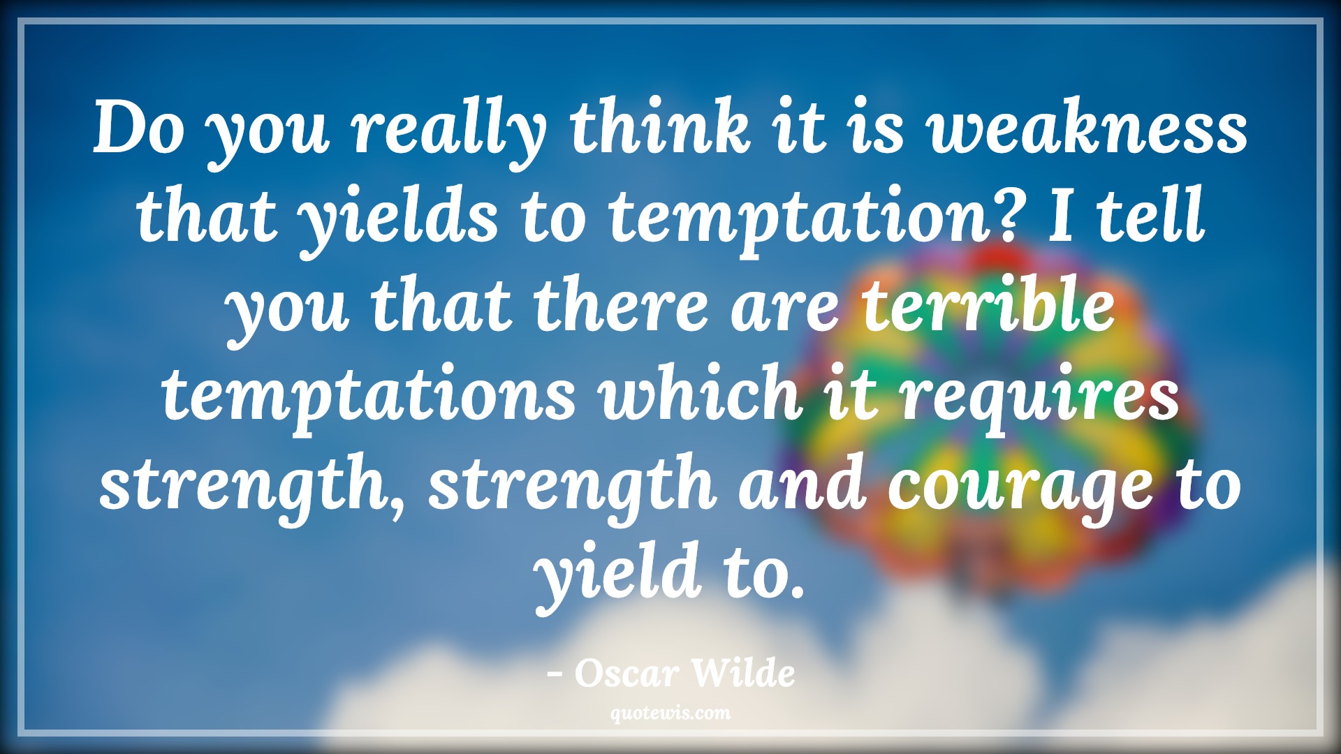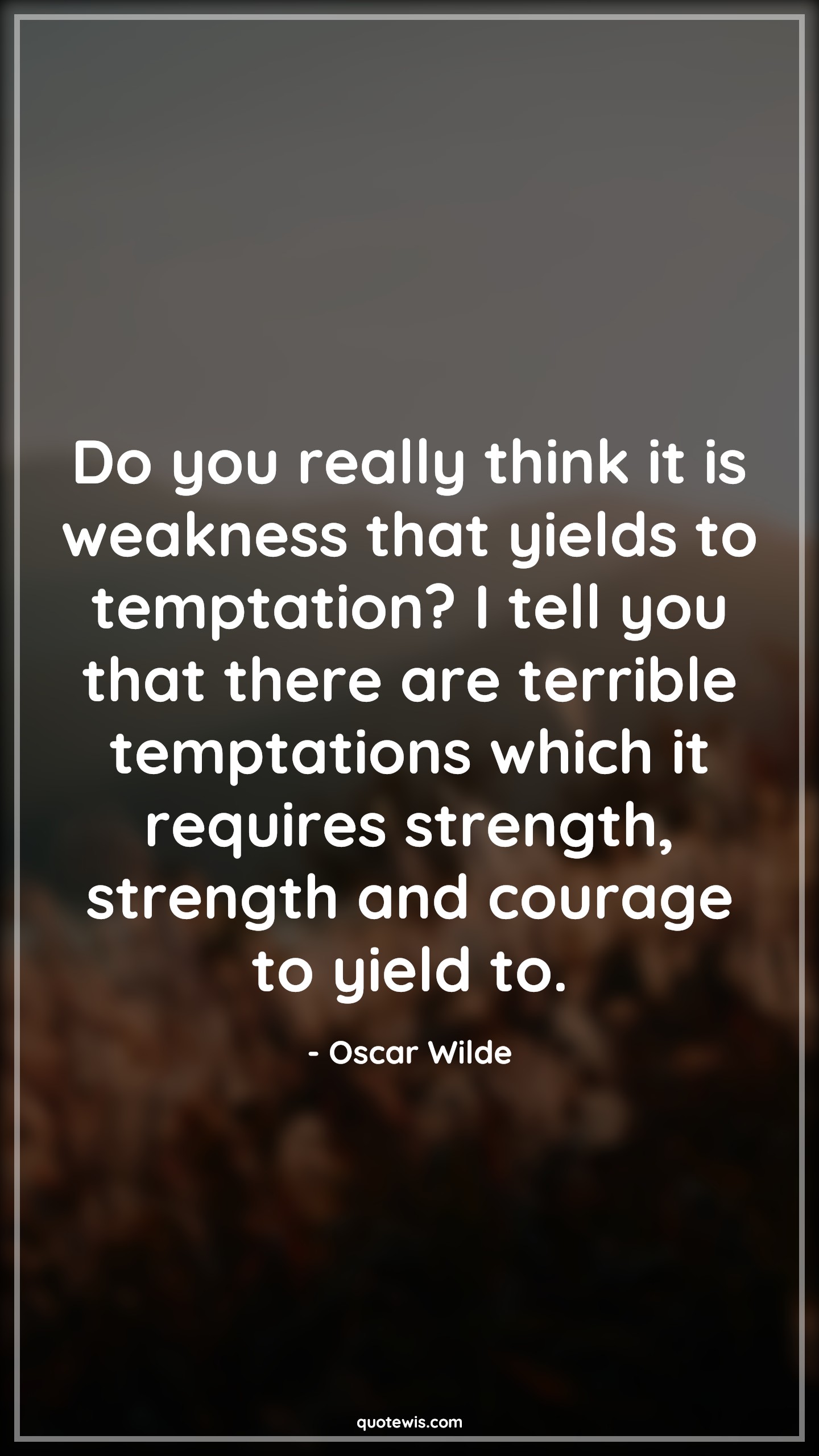 Do you really think it is weakness that yields to temptation? I tell you that there are terrible temptations which it requires strength, strength and courage to yield to.