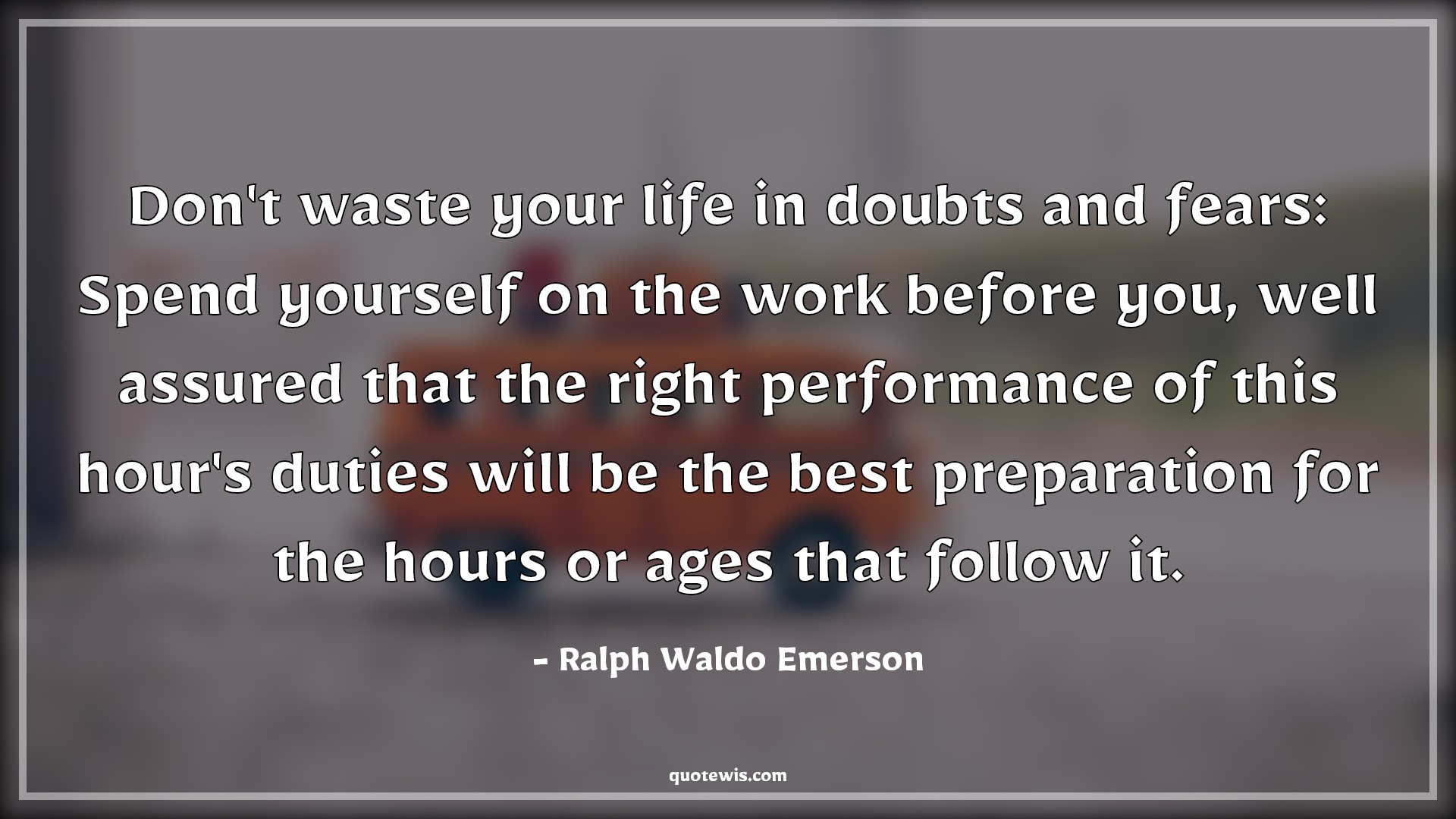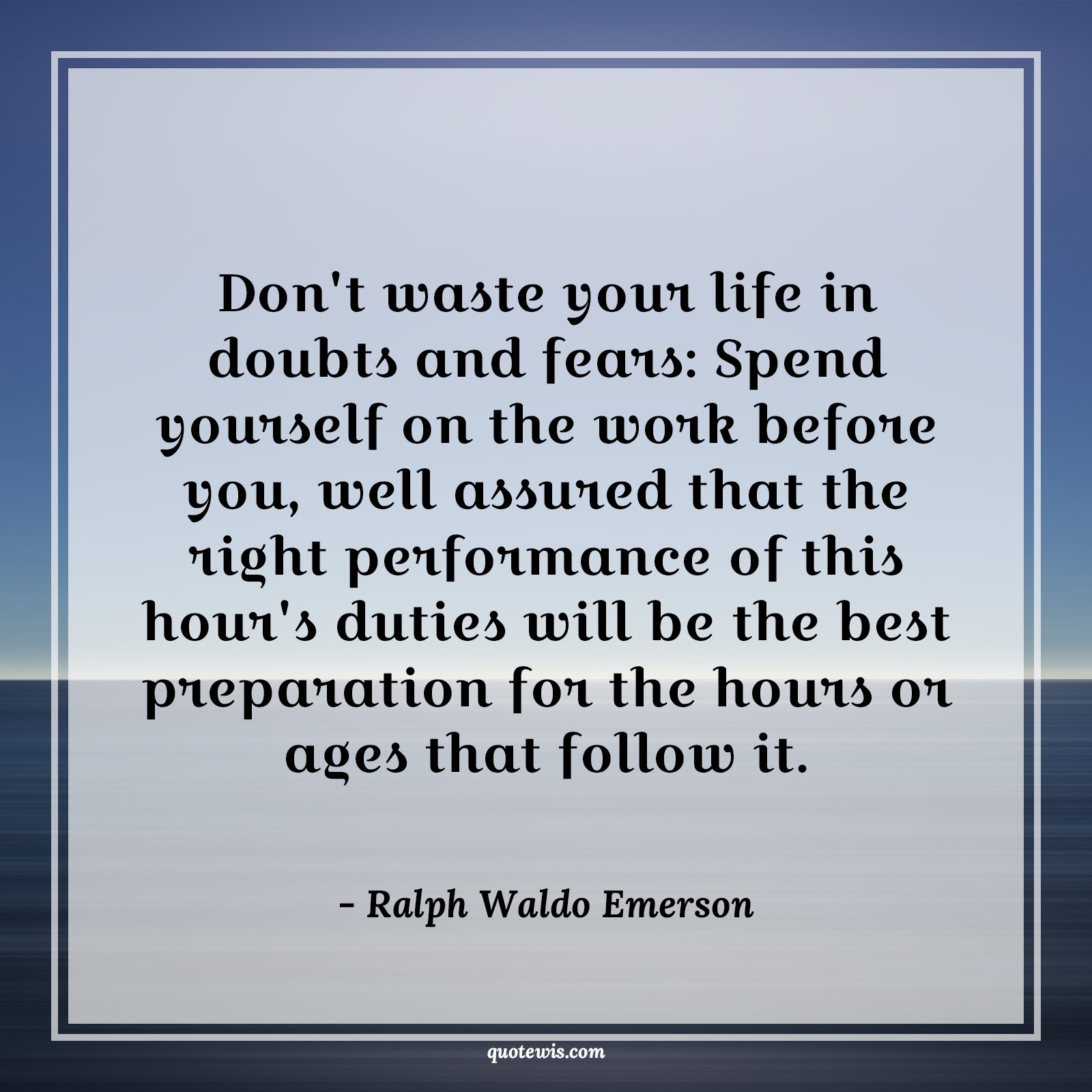 Don't waste your life in doubts and fears: Spend yourself on the work before you, well assured that the right performance of this hour's duties will be the best preparation for the hours or ages that follow it.