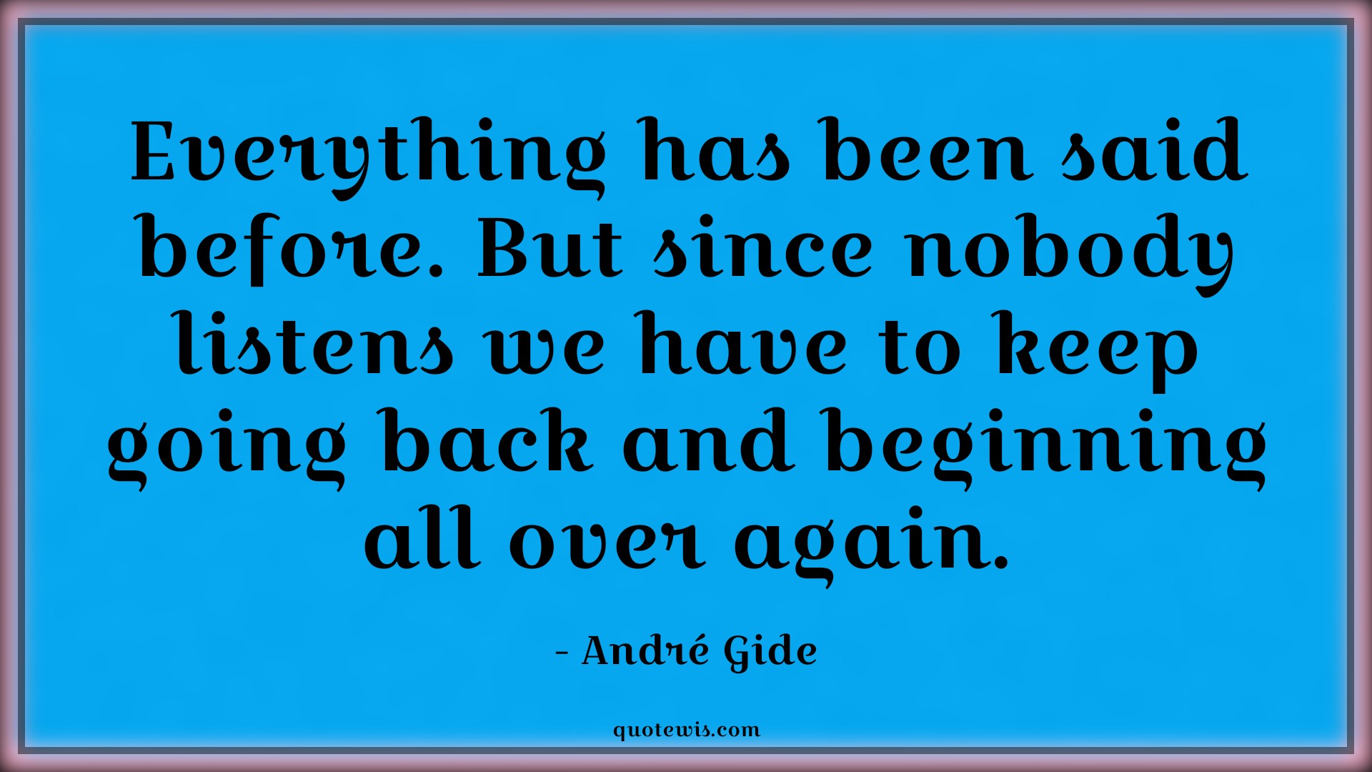 Everything has been said before. But since nobody listens we have to keep going back and beginning all over again.