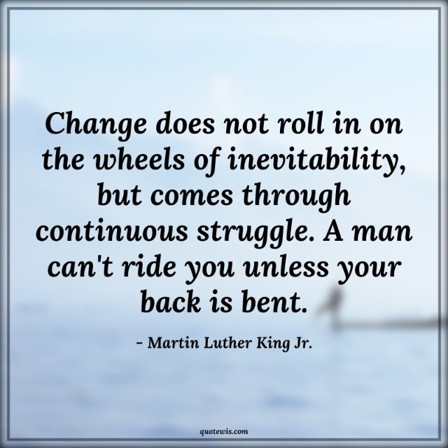 Change does not roll in on the wheels of inevitability, but comes through continuous struggle. A man can't ride you unless your back is bent.