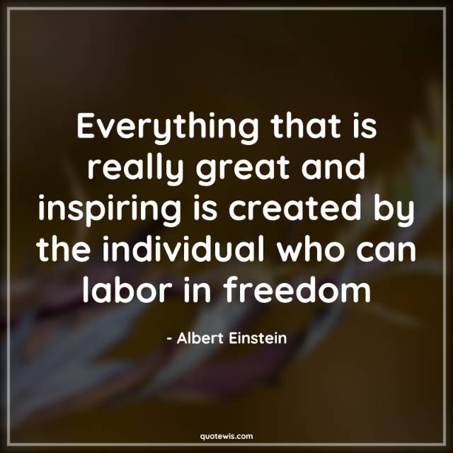 Everything that is really great and inspiring is created by the individual who can labor in freedom