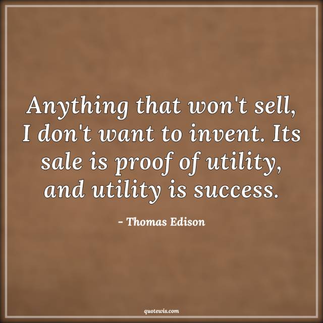 Anything that won't sell, I don't want to invent. Its sale is proof of utility, and utility is success.