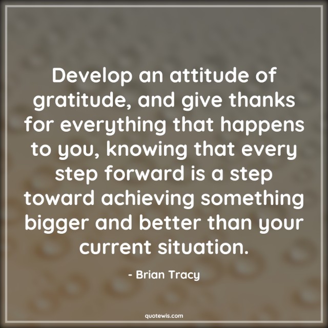 Develop an attitude of gratitude, and give thanks for everything that happens to you, knowing that every step forward is a step toward achieving something bigger and better than your current situation.