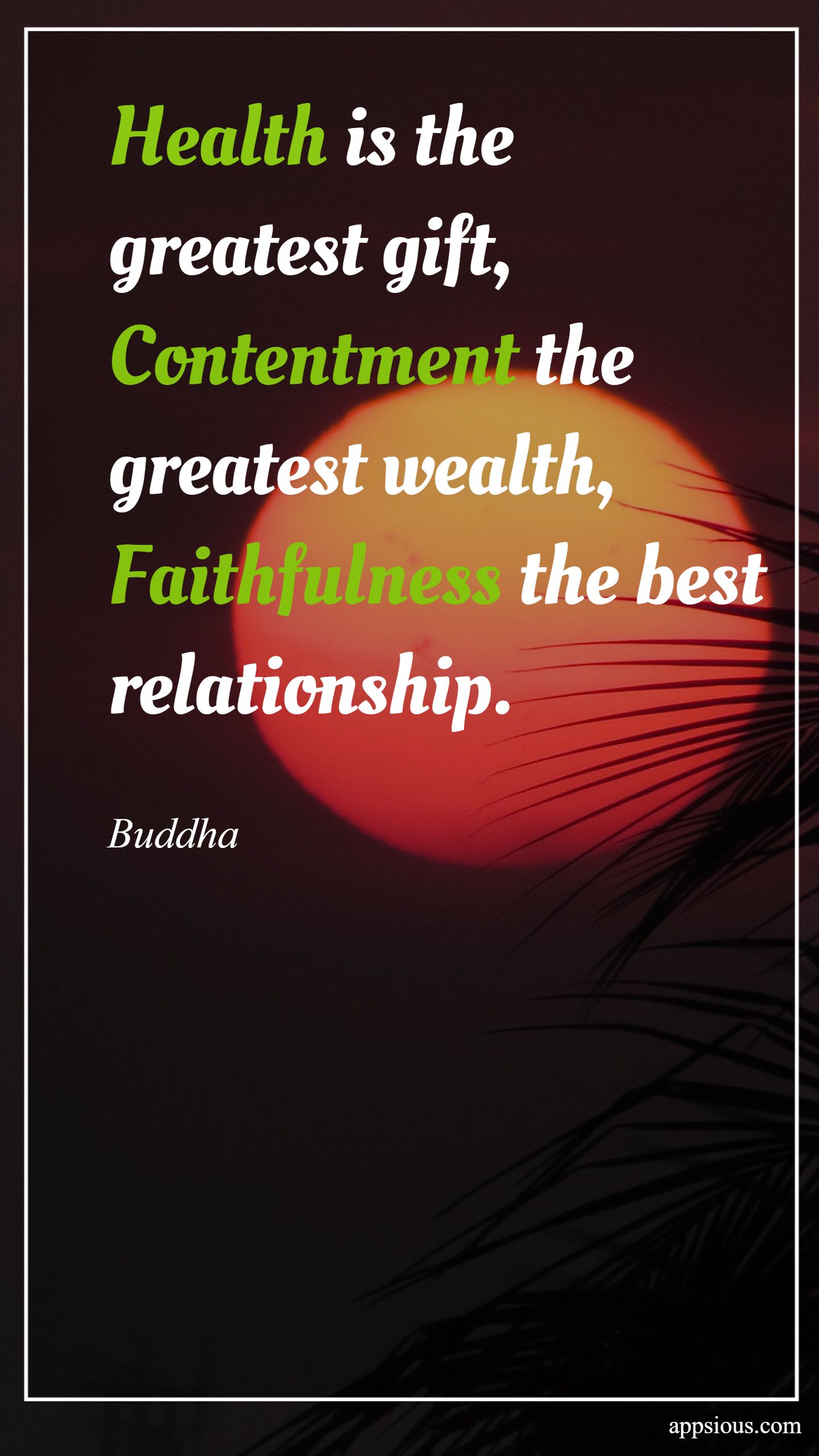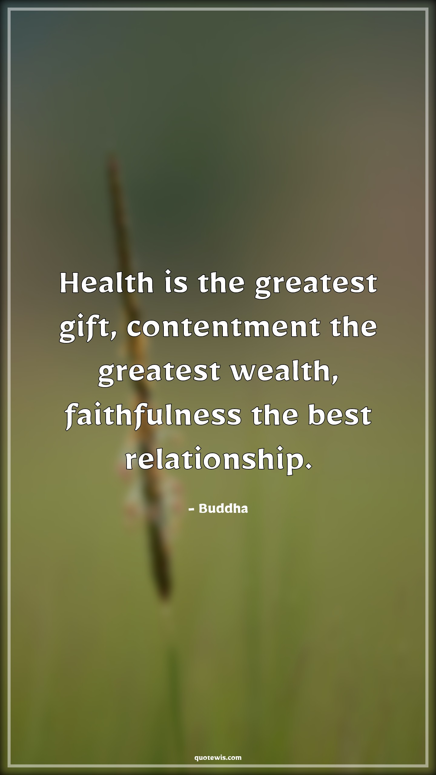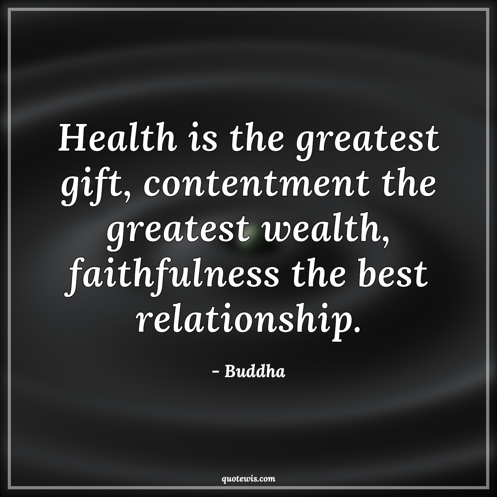 Health is the greatest gift, contentment the greatest wealth, faithfulness the best relationship.