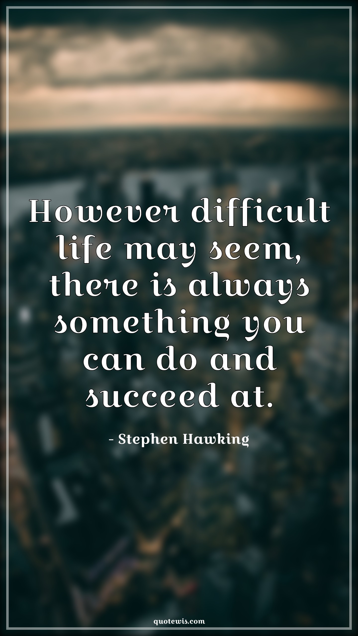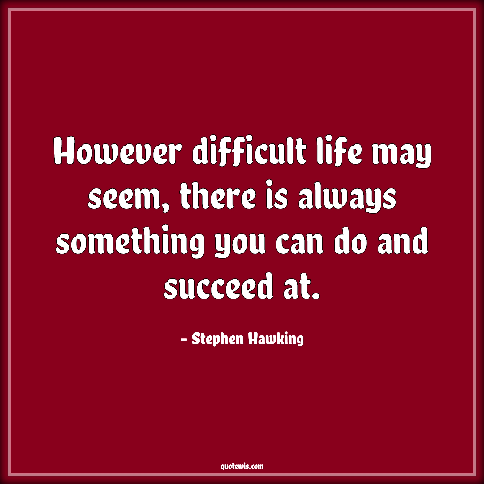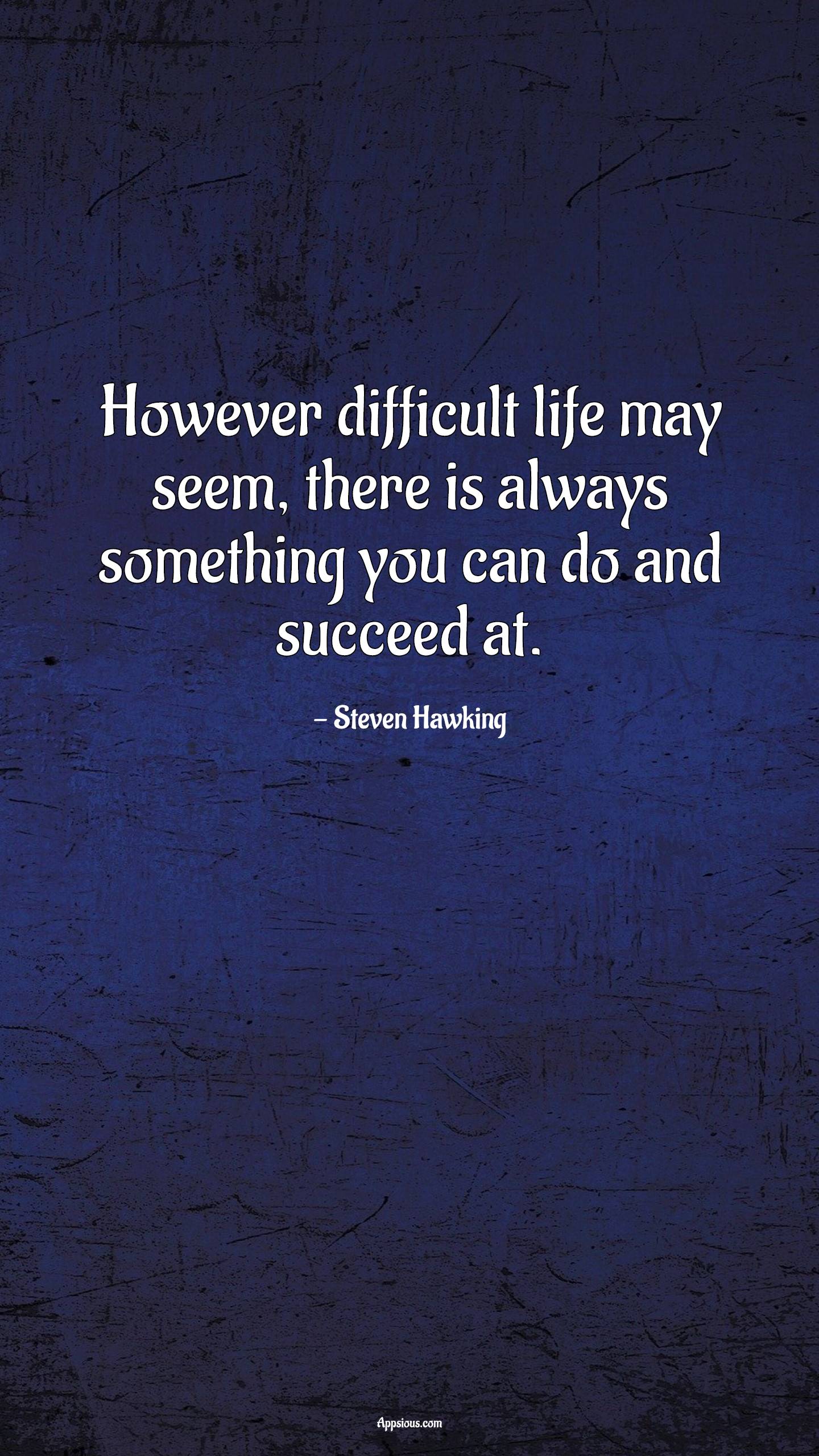 However difficult life may seem, there is always something you can do and succeed at.