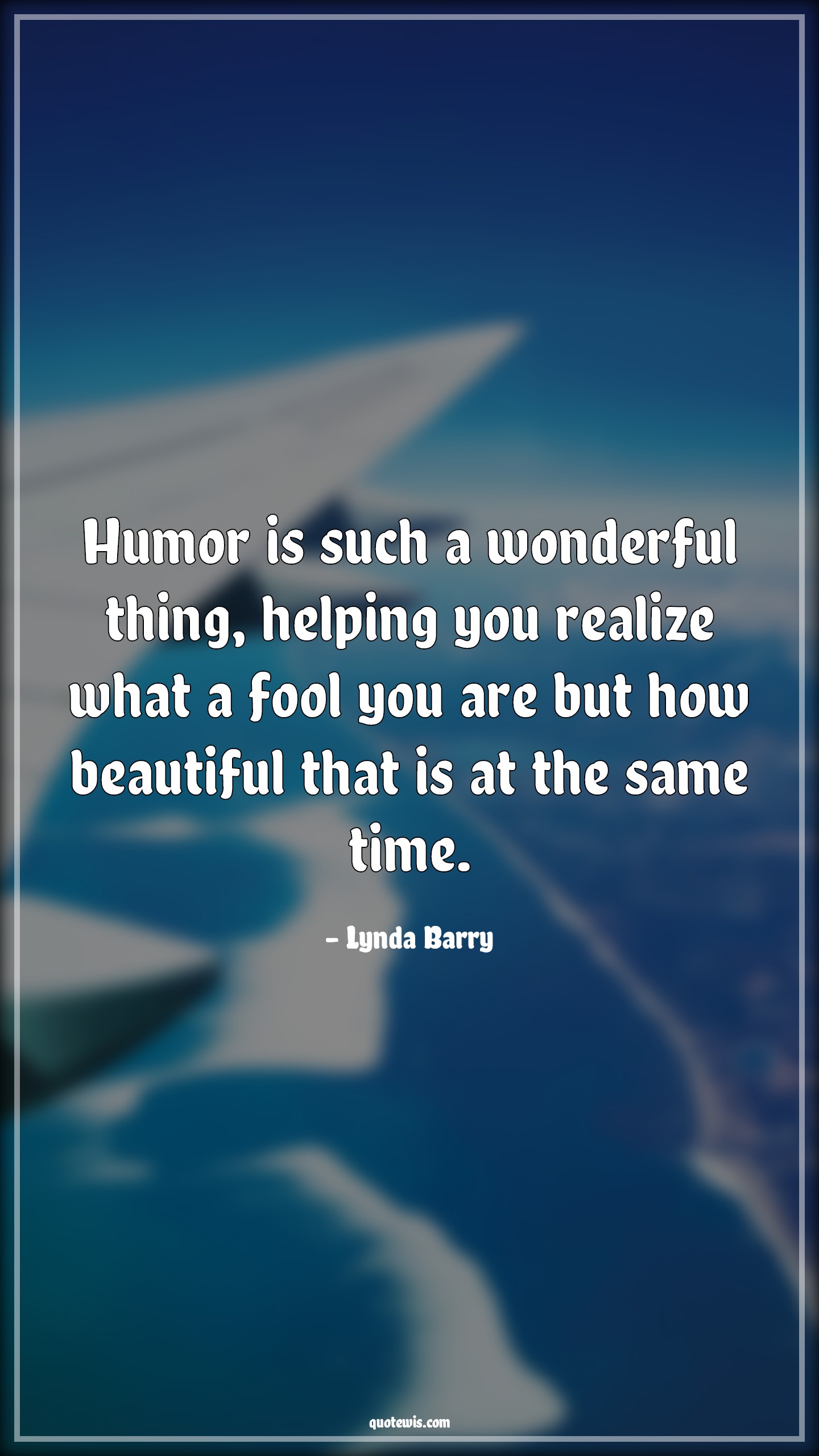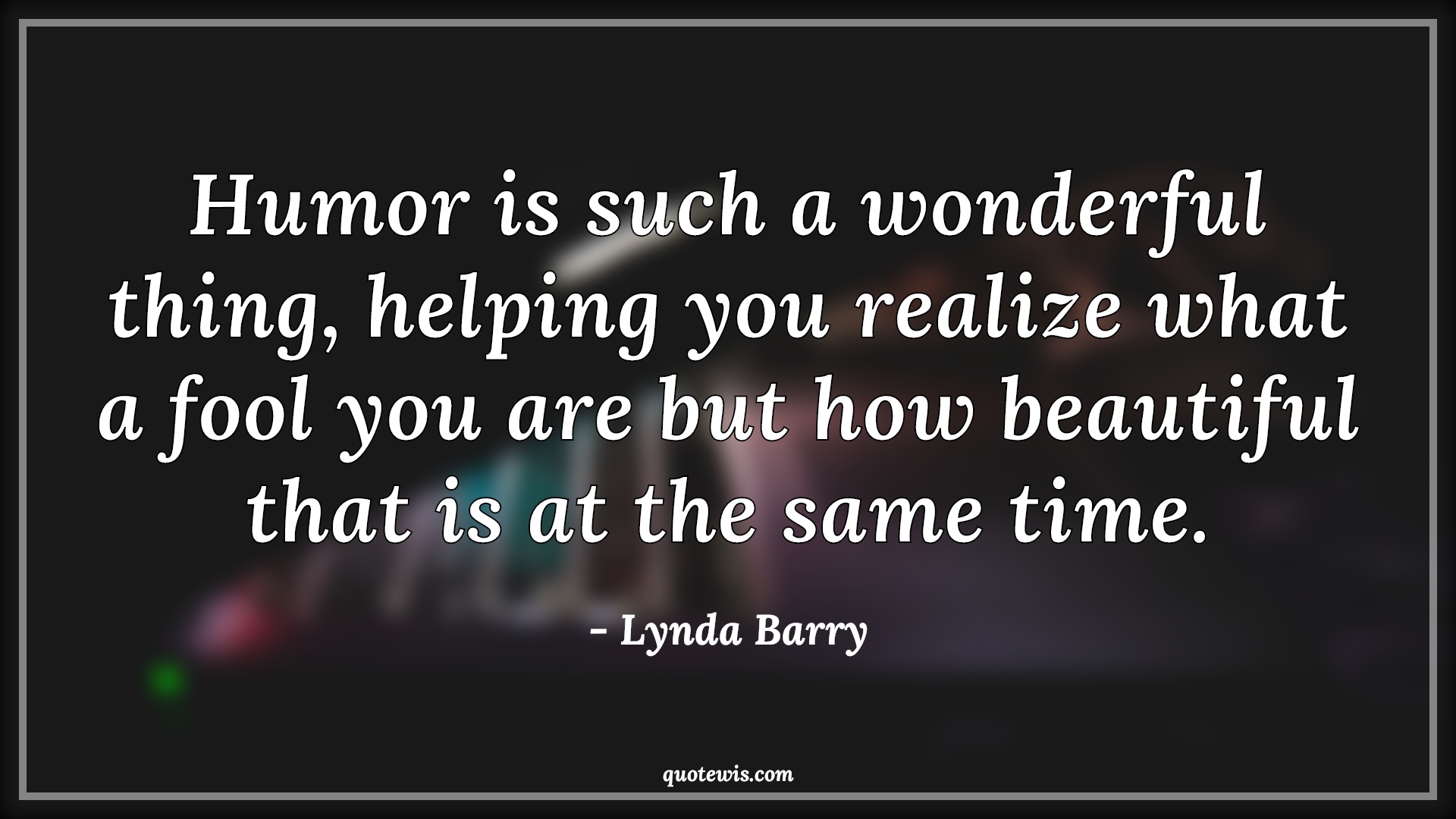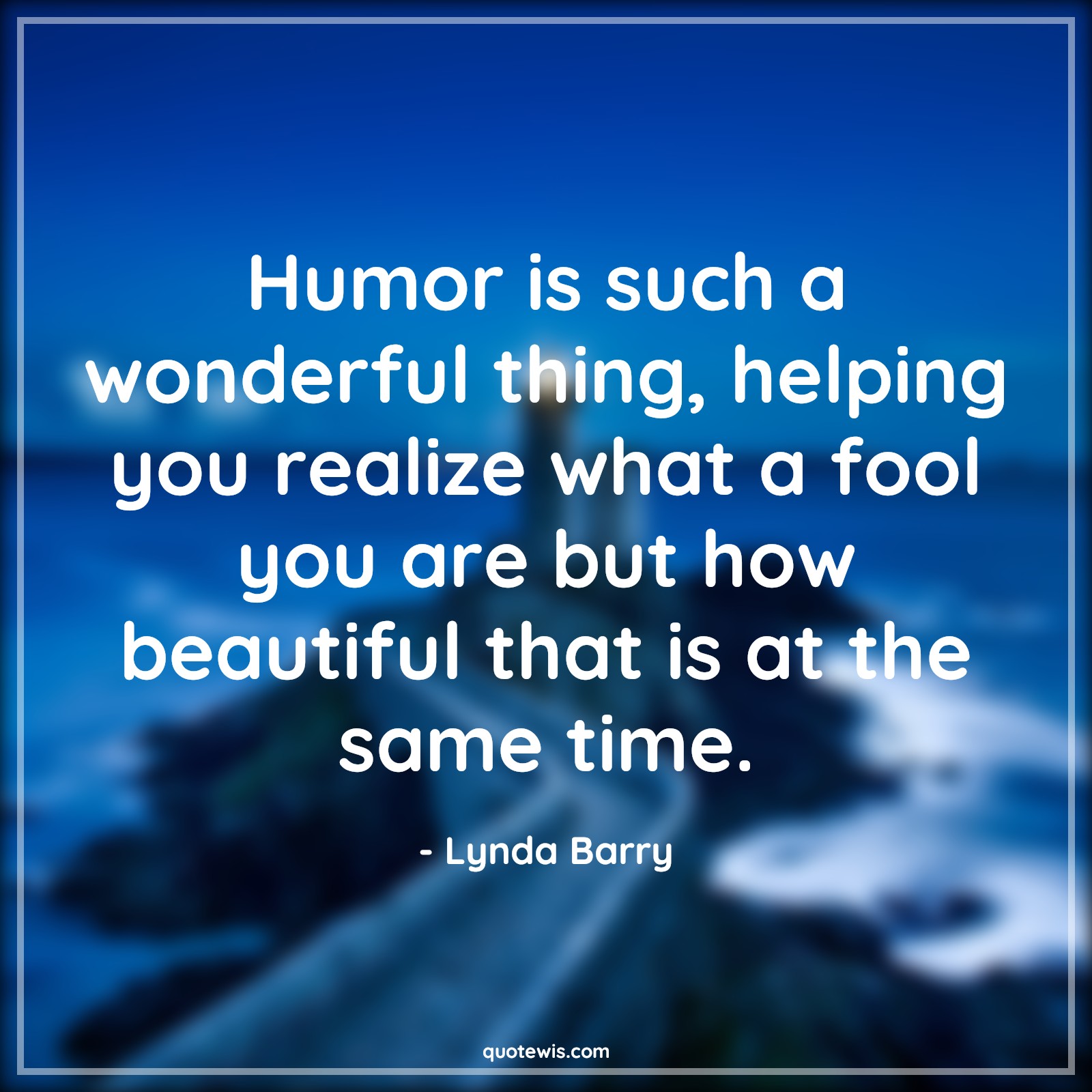 Humor is such a wonderful thing, helping you realize what a fool you are but how beautiful that is at the same time.