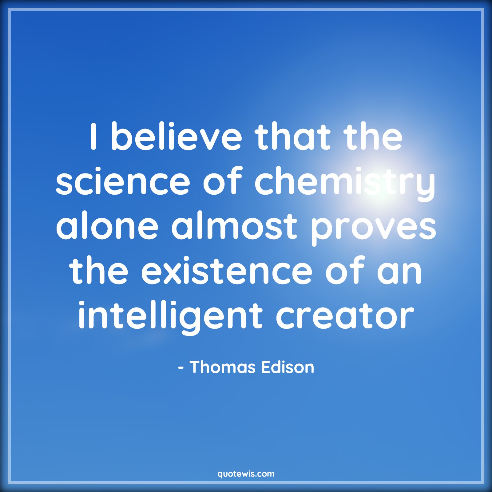 I believe that the science of chemistry alone almost proves the existence of an intelligent creator