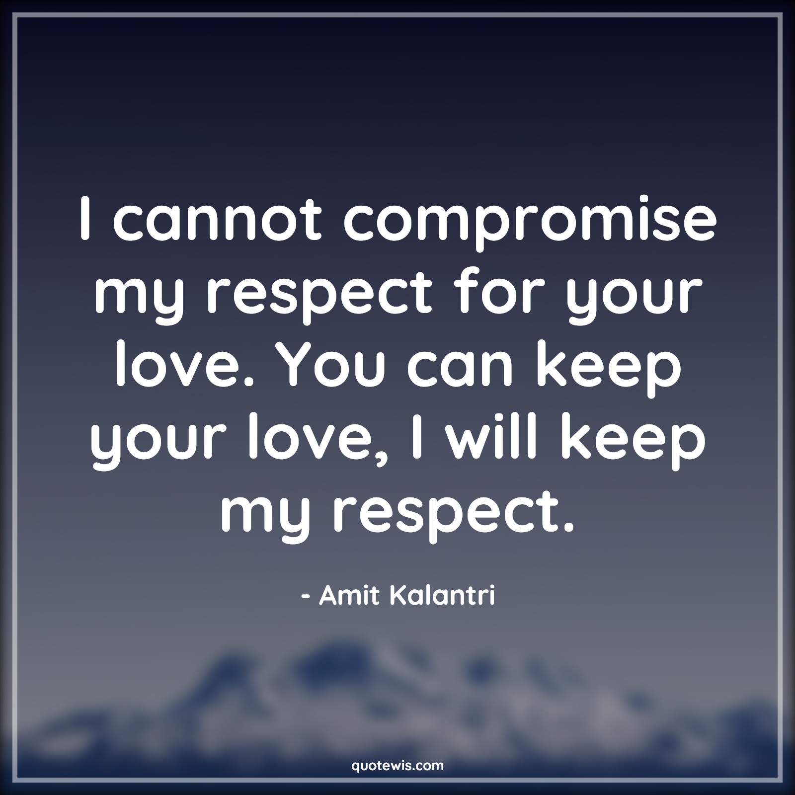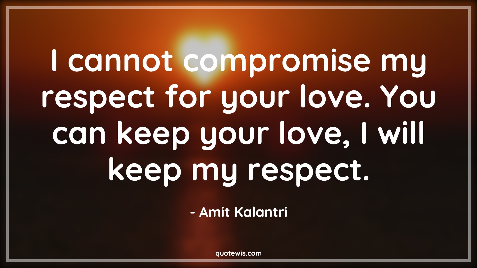 I cannot compromise my respect for your love. You can keep your love, I will keep my respect.