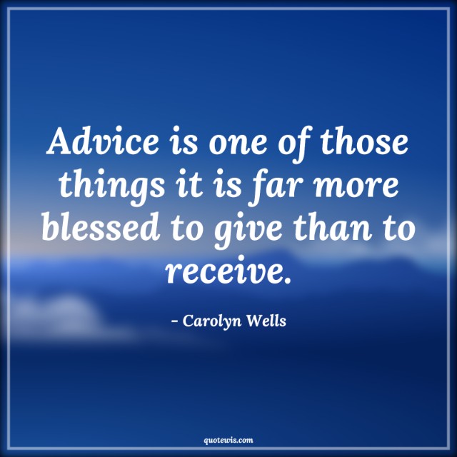 Advice is one of those things it is far more blessed to give than to receive.