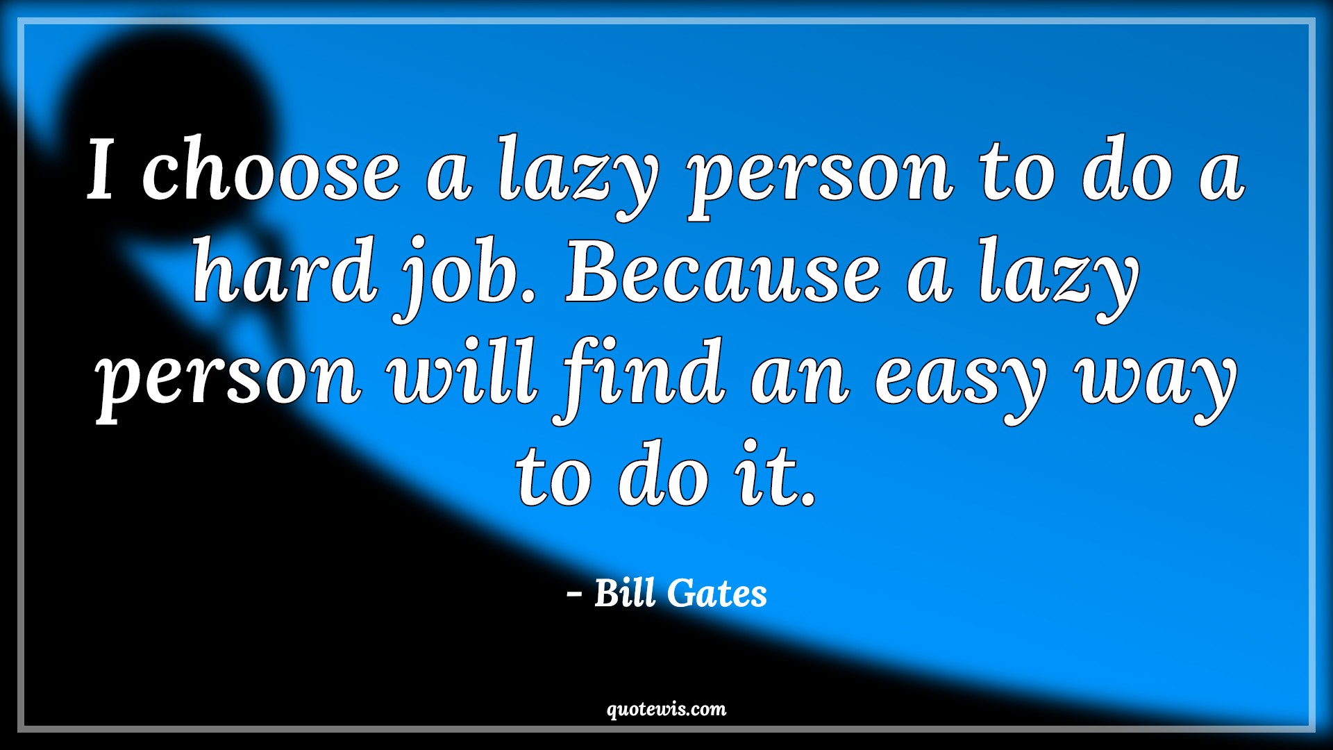 I choose a lazy person to do a hard job. Because a lazy person will find an easy way to do it.