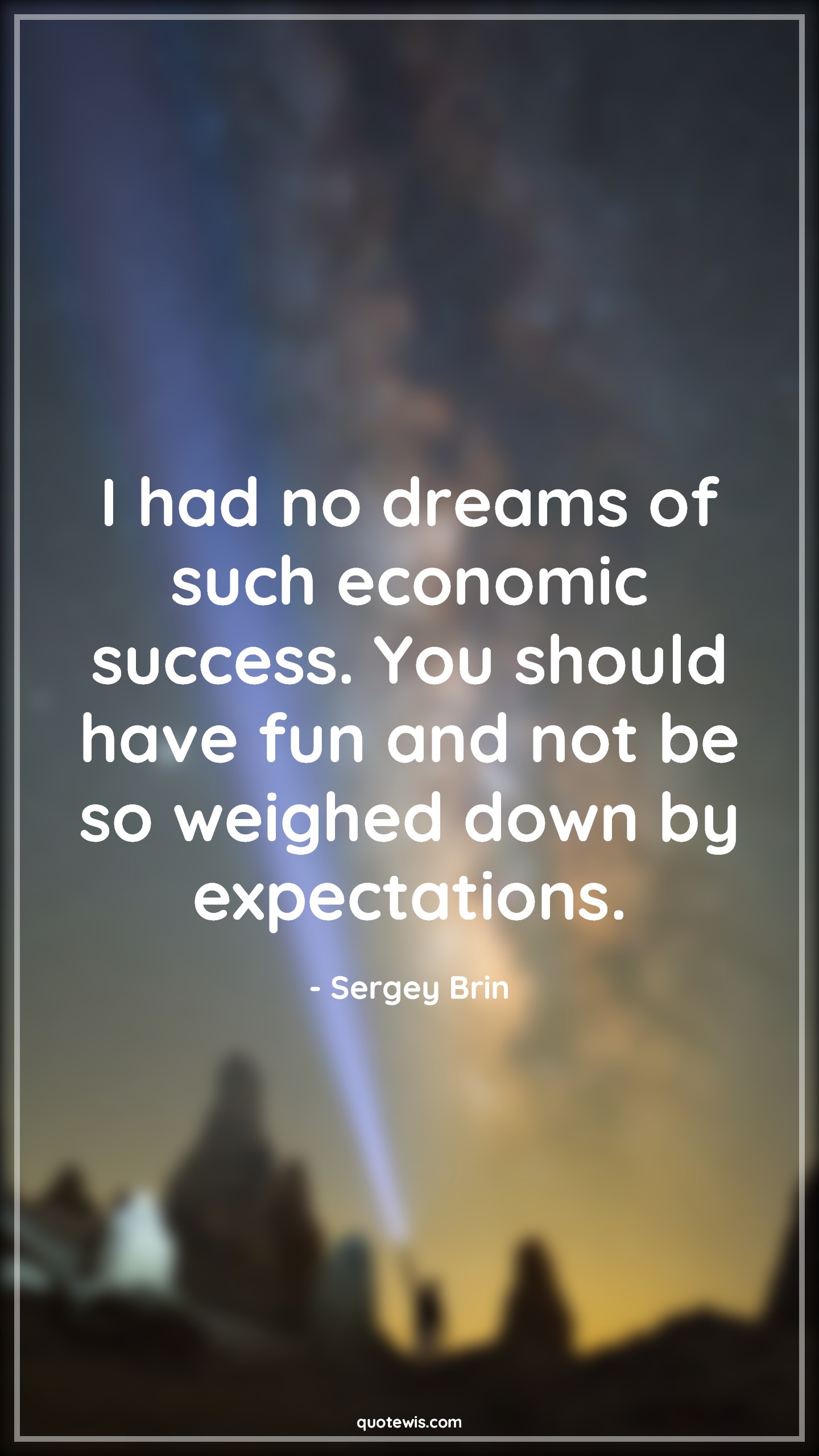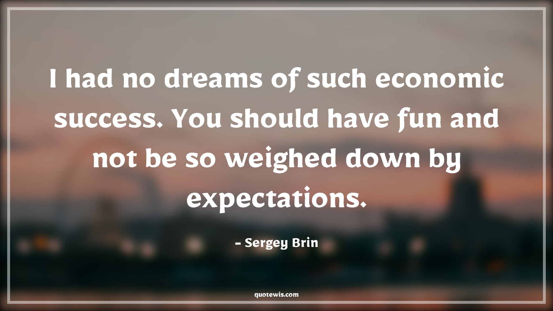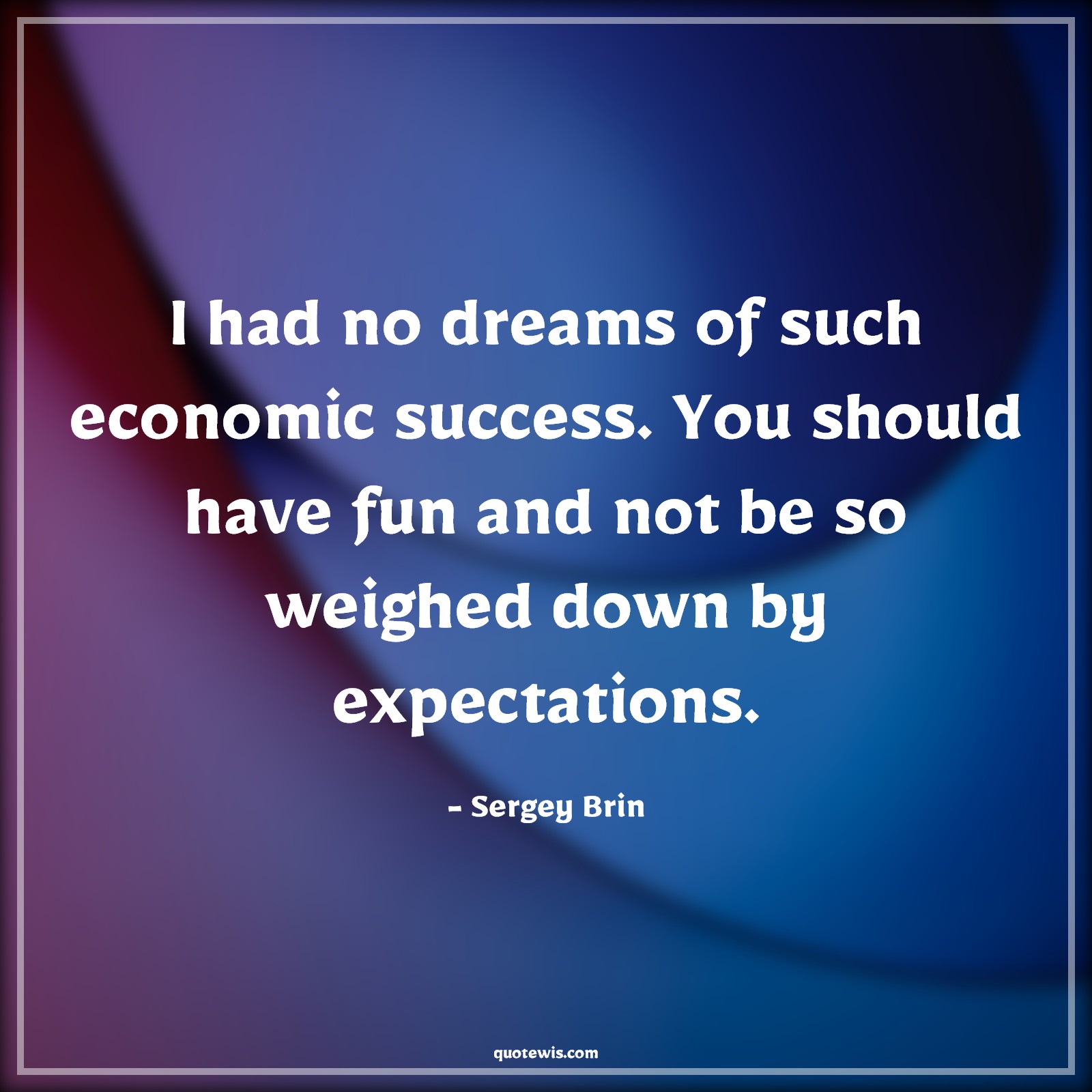 I had no dreams of such economic success. You should have fun and not be so weighed down by expectations.