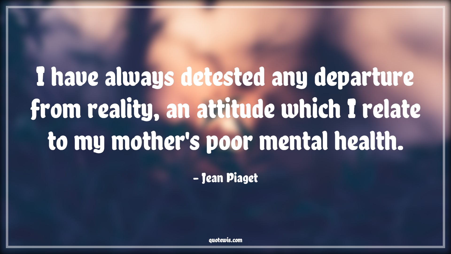 I have always detested any departure from reality, an attitude which I relate to my mother's poor mental health.