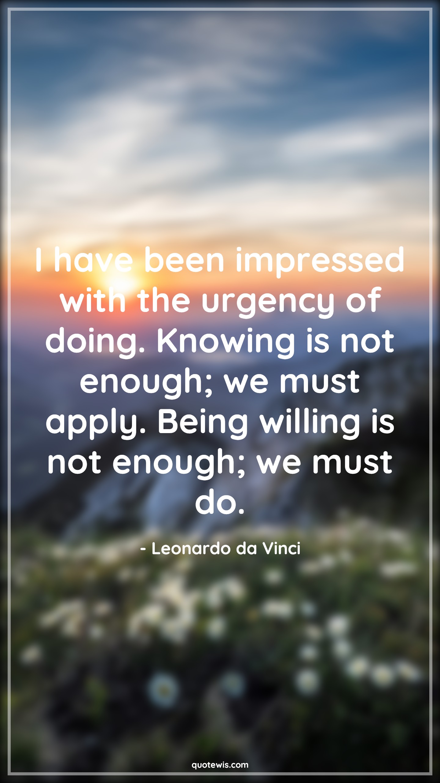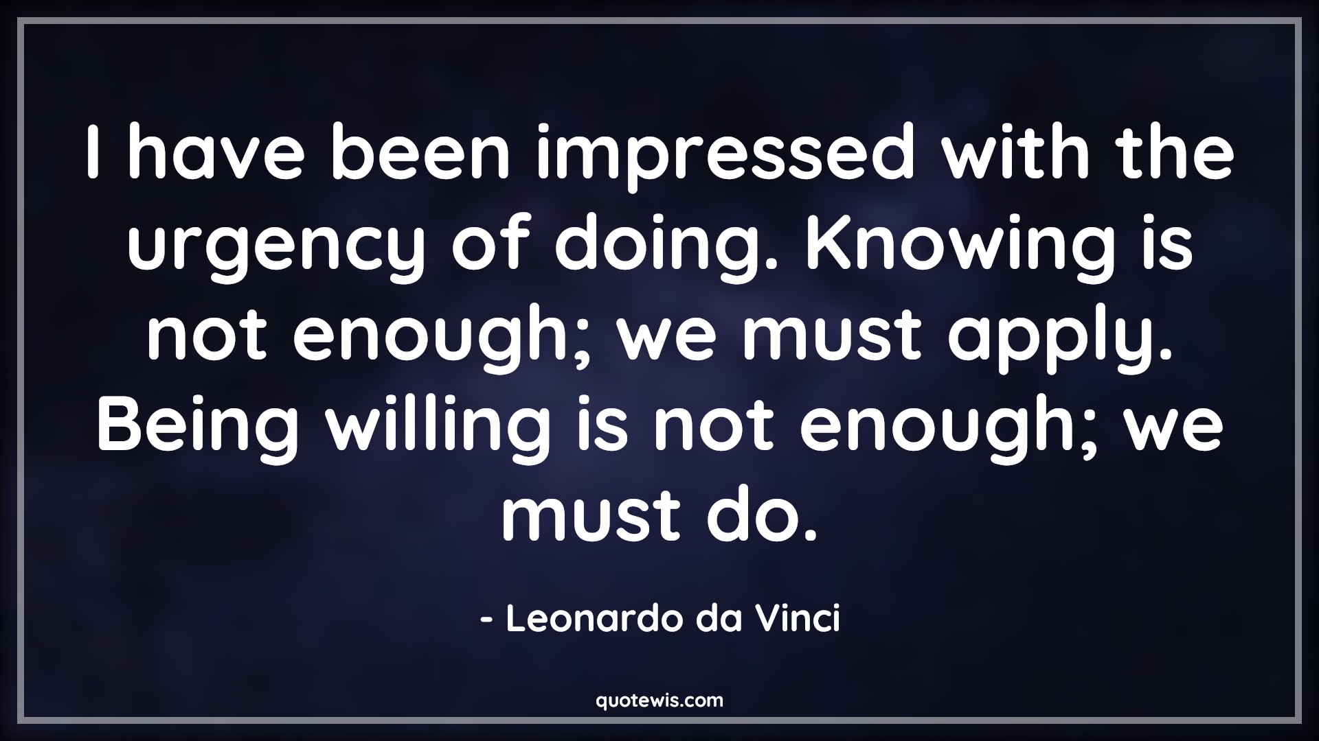 I have been impressed with the urgency of doing. Knowing is not enough; we must apply. Being willing is not enough; we must do.