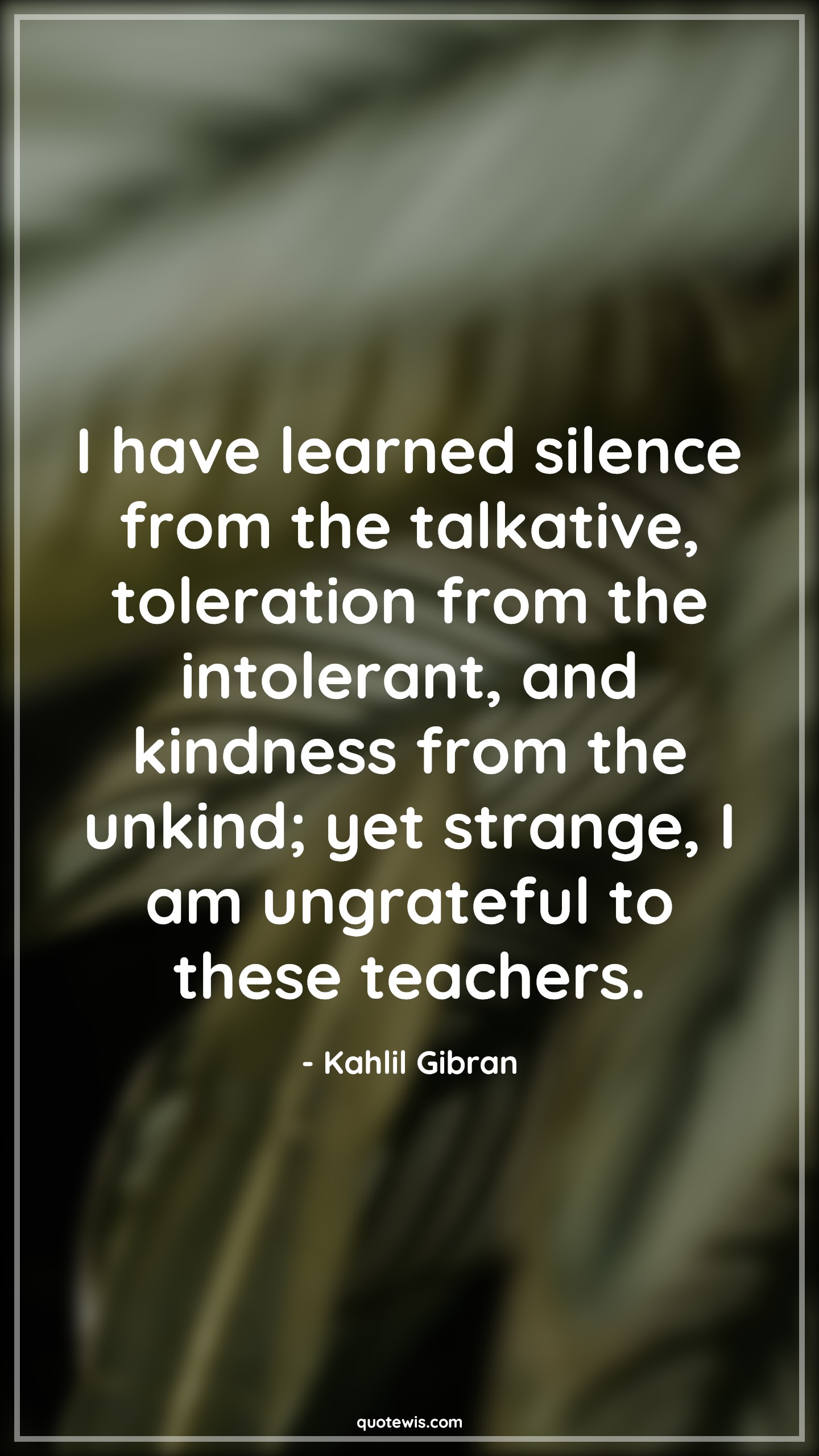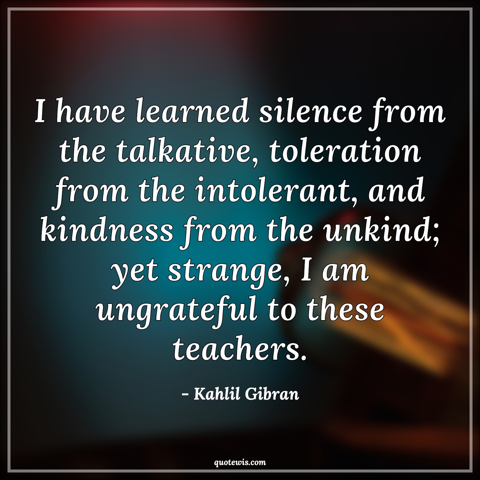 I have learned silence from the talkative, toleration from the intolerant, and kindness from the unkind; yet strange, I am ungrateful to these teachers.