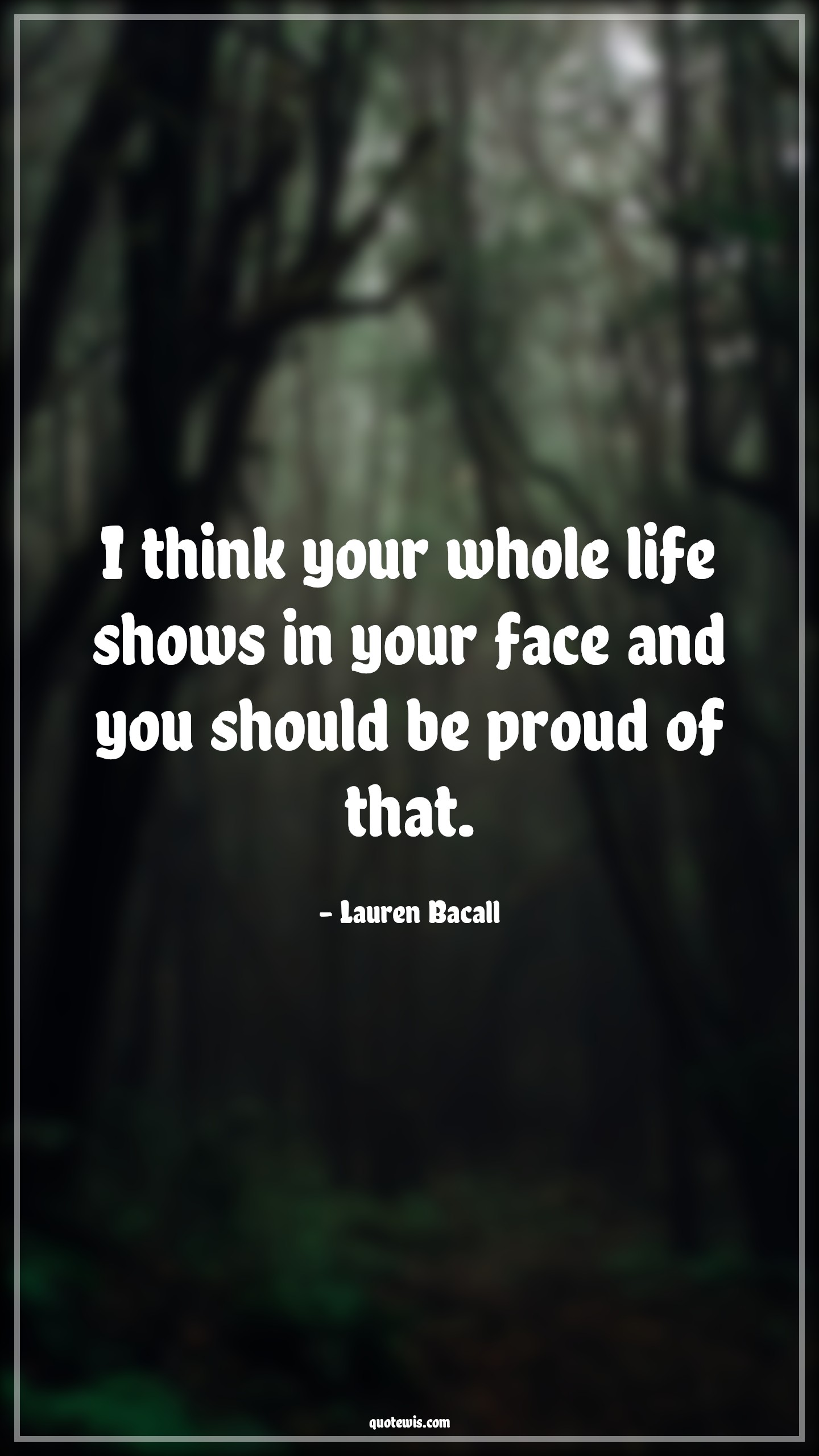 Quotes > Lauren Bacall Quotes > I think your whole life shows in your face and you should be proud of that.