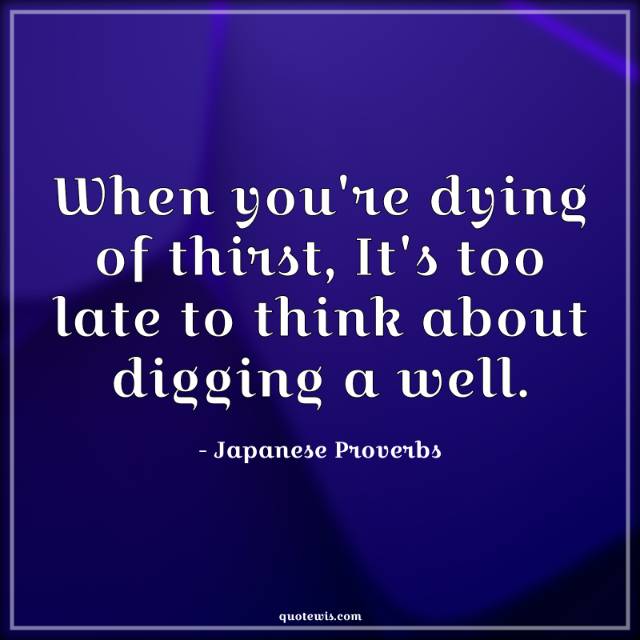 When you're dying of thirst, It's too late to think about digging a well.