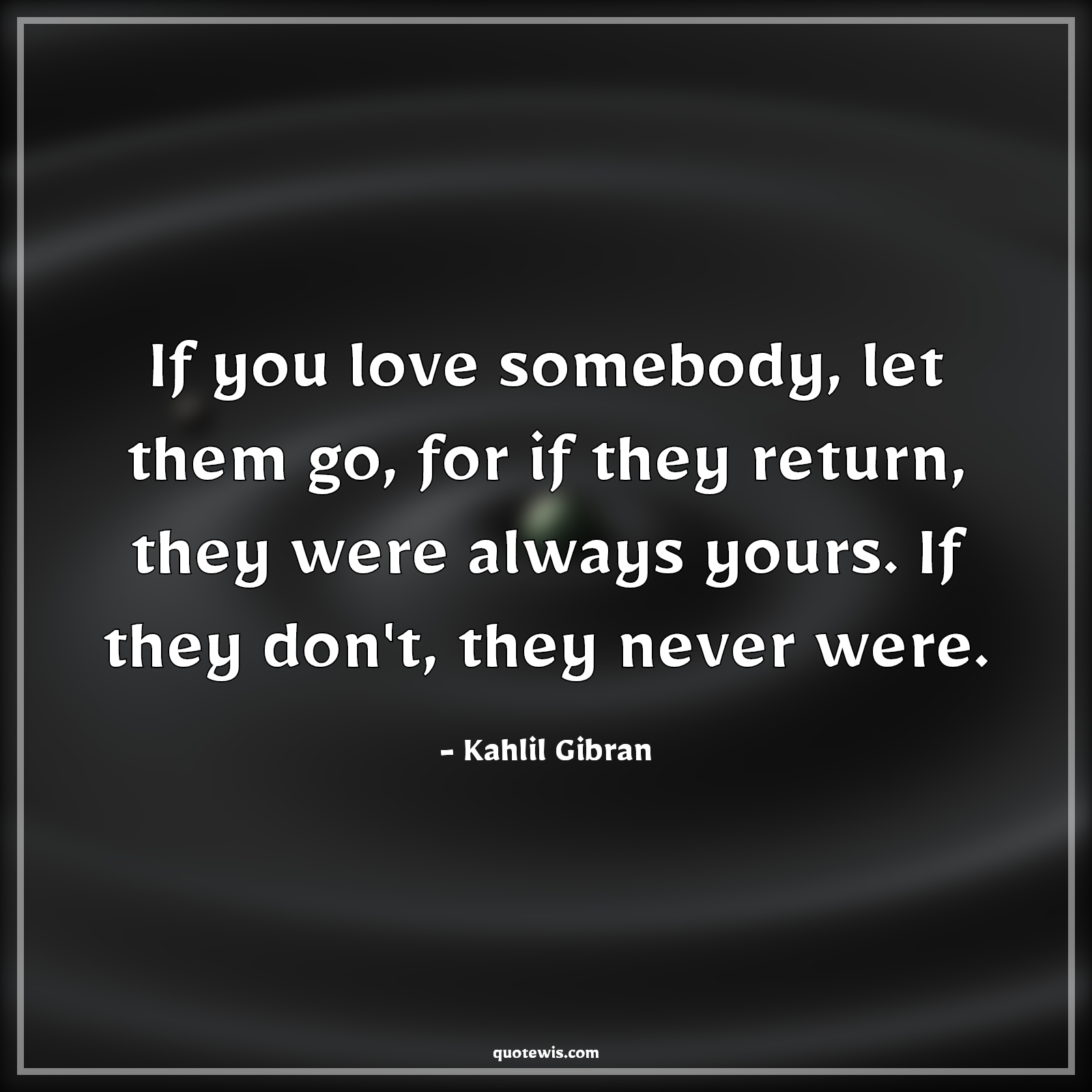 If you love somebody, let them go, for if they return, they were always yours. If they don't, they never were.