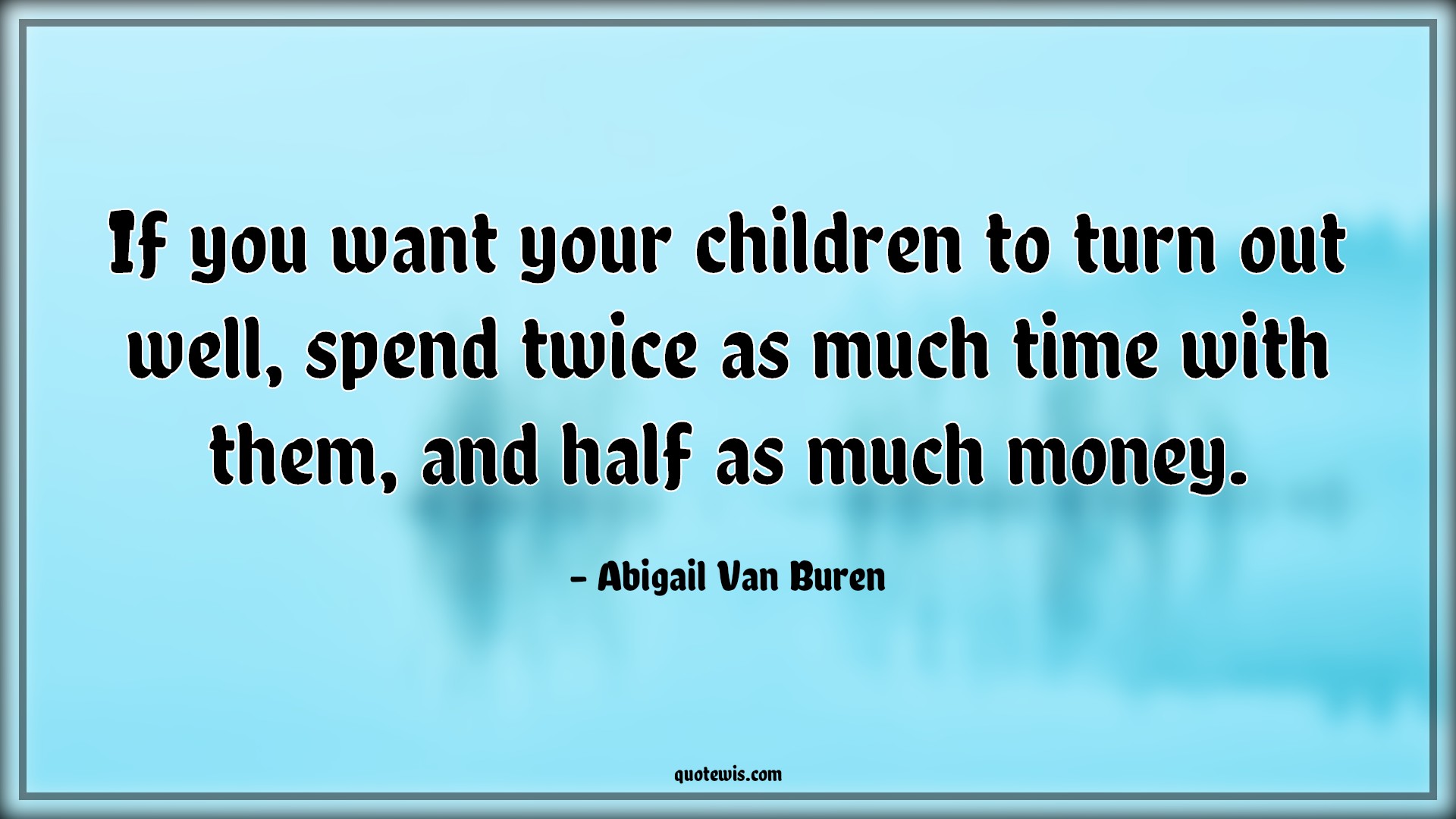If you want your children to turn out well, spend twice as much time with them, and half as much money.