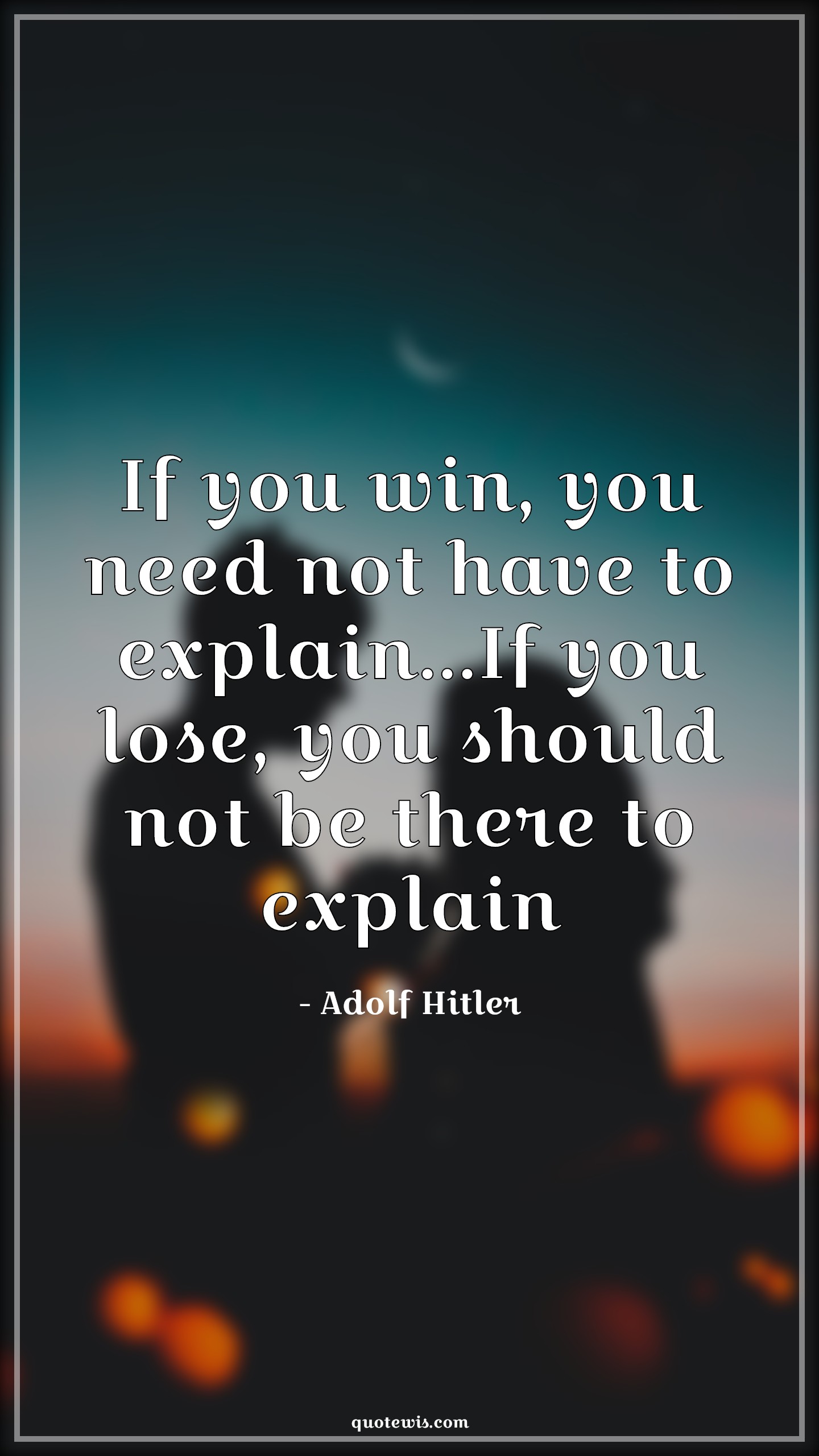 If you win, you need not have to explain...If you lose, you should not be there to explain