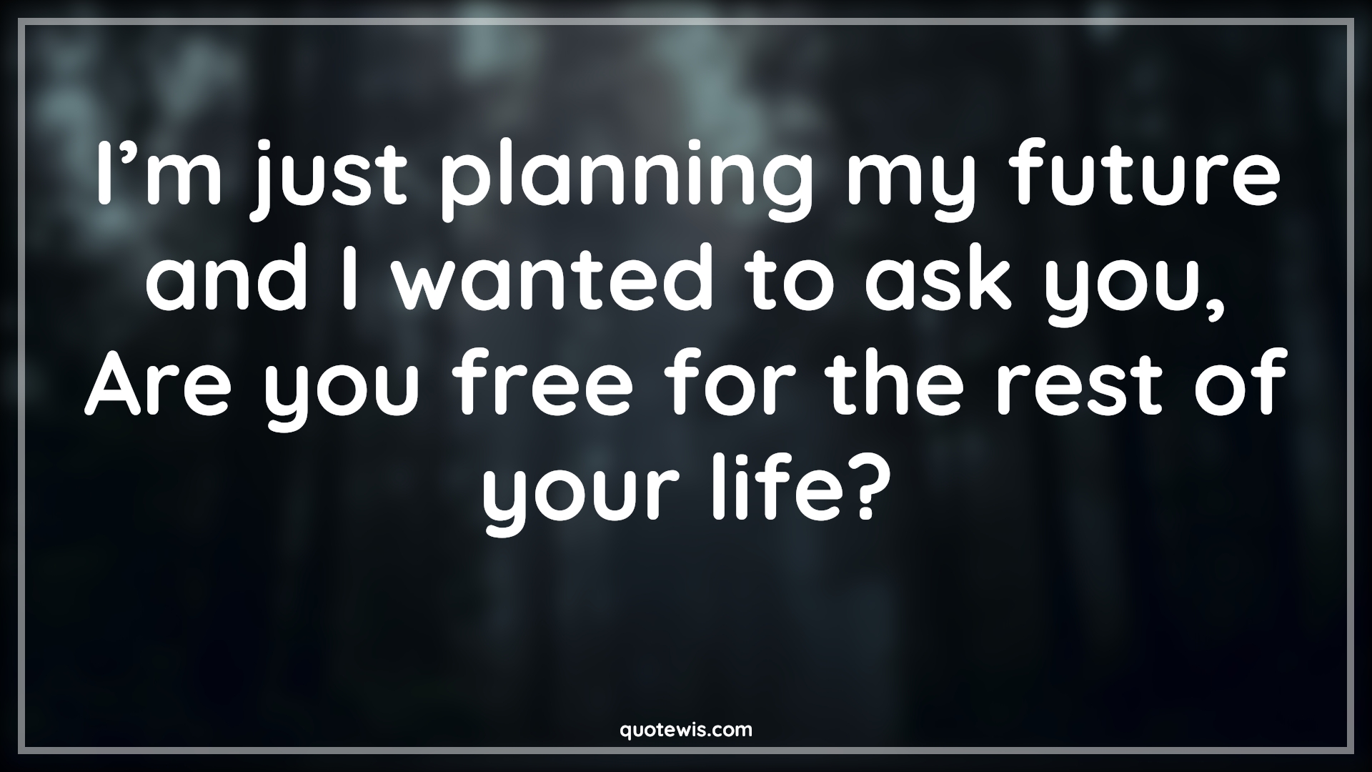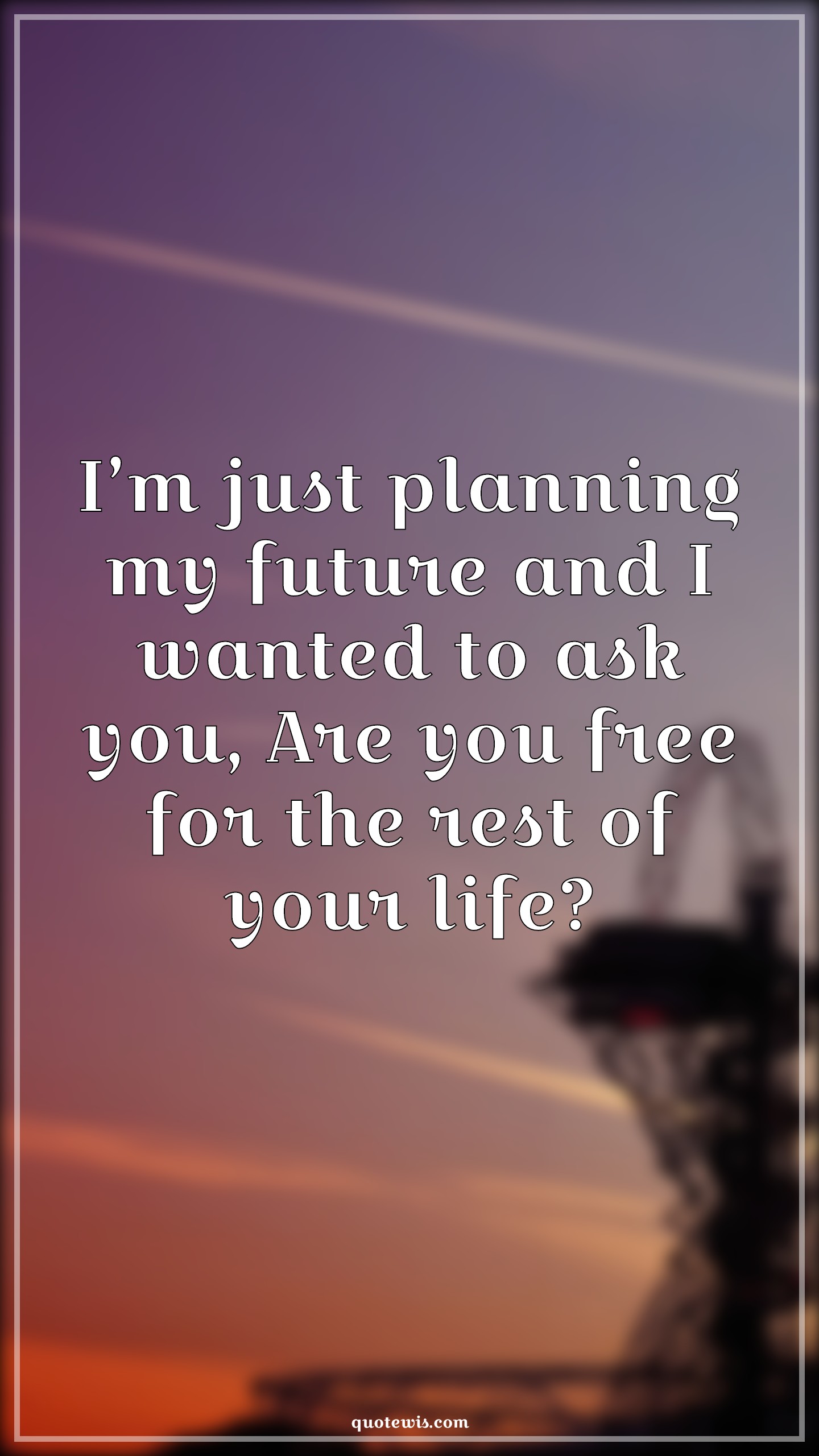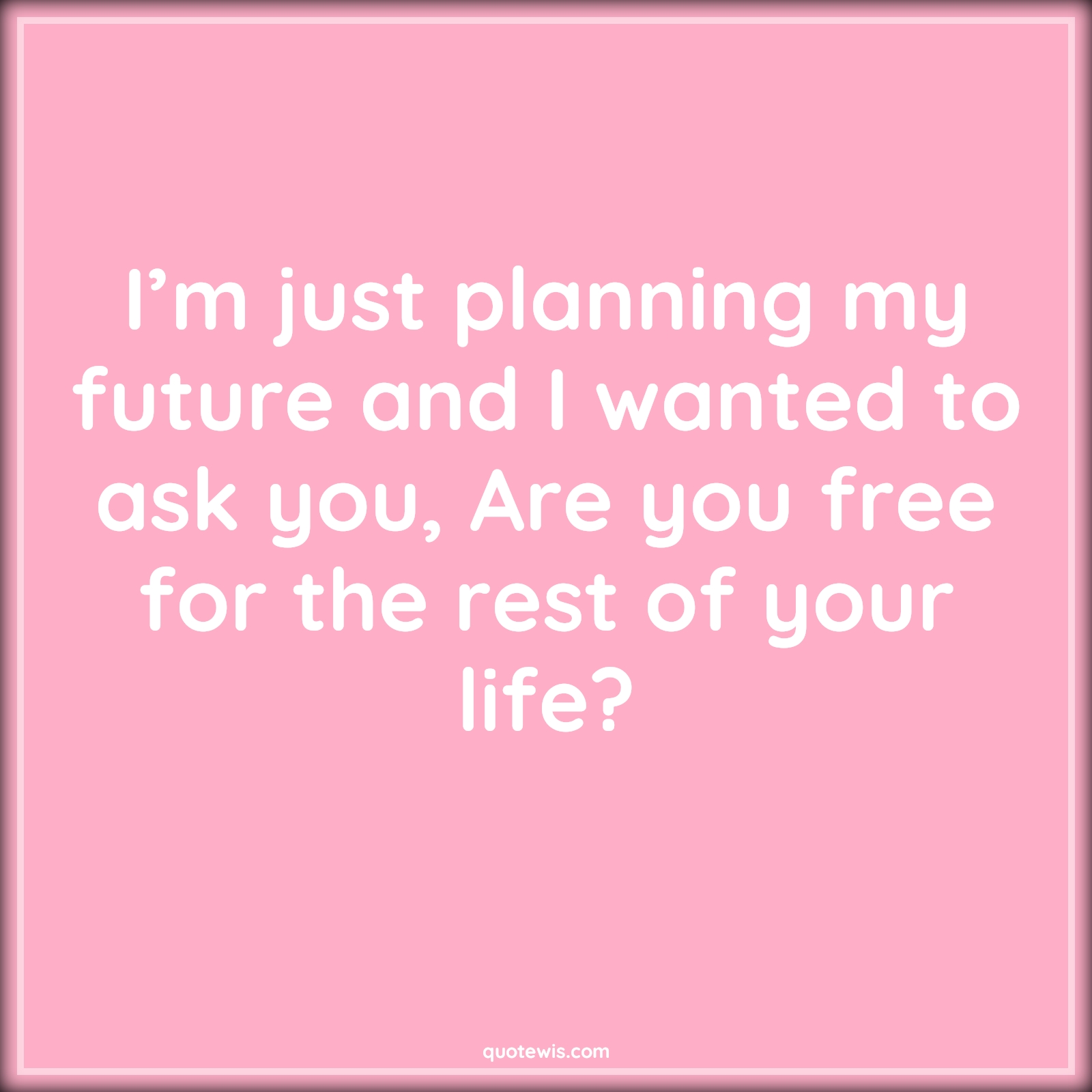 I’m just planning my future and I wanted to ask you, Are you free for the rest of your life?