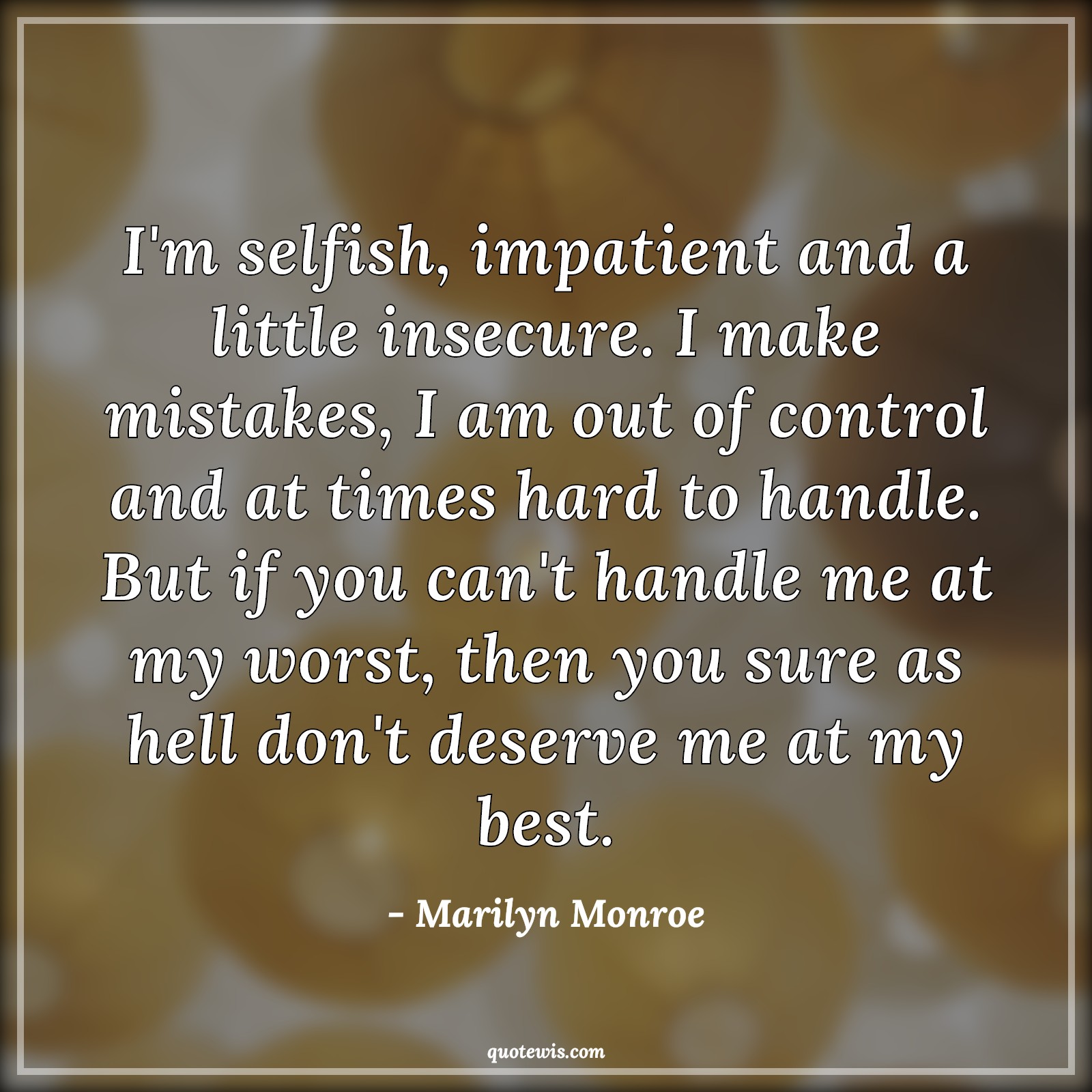 I'm selfish, impatient and a little insecure. I make mistakes, I am out of control and at times hard to handle. But if you can't handle me at my worst, then you sure as hell don't deserve me at my best.