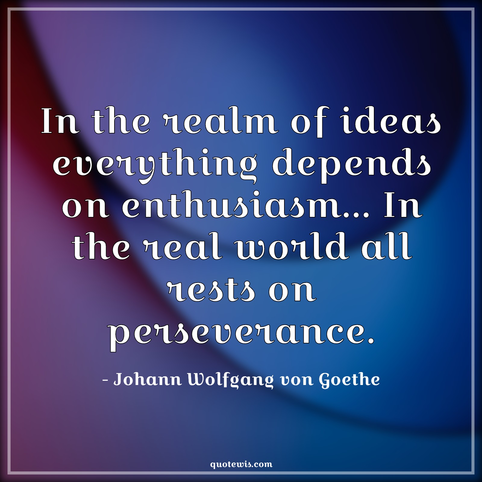 In the realm of ideas everything depends on enthusiasm... In the real world all rests on perseverance.