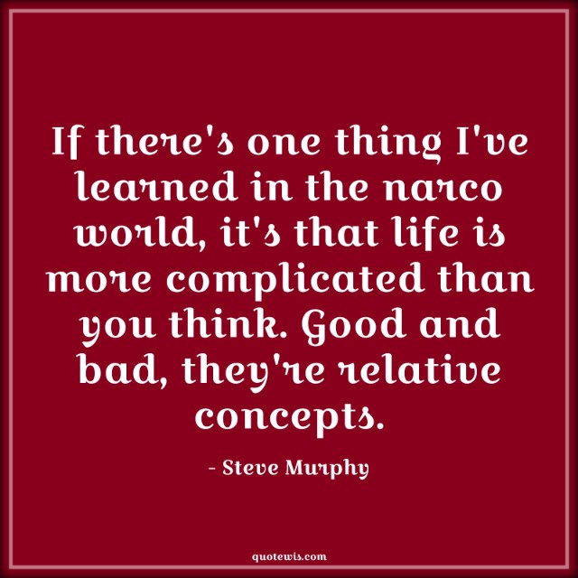 If there's one thing I've learned in the narco world, it's that life is more complicated than you think. Good and bad, they're relative concepts.