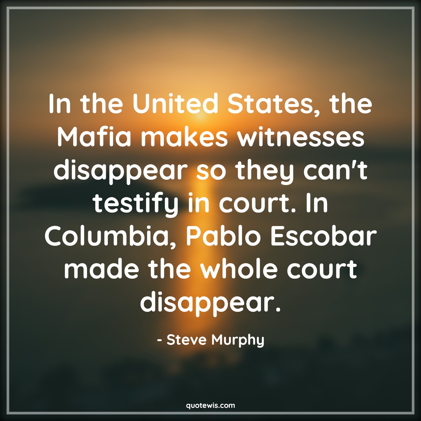 In the United States, the Mafia makes witnesses disappear so they can't testify in court. In Columbia, Pablo Escobar made the whole court disappear.