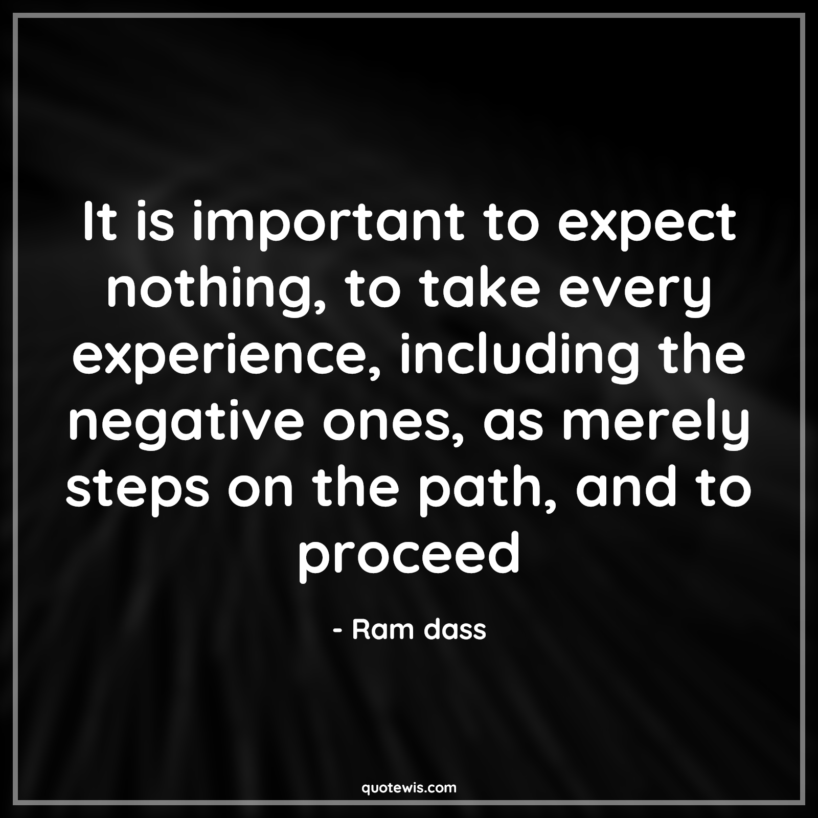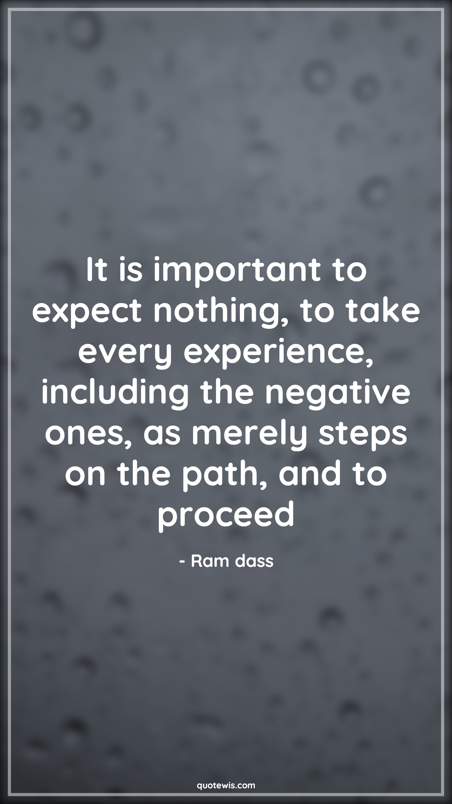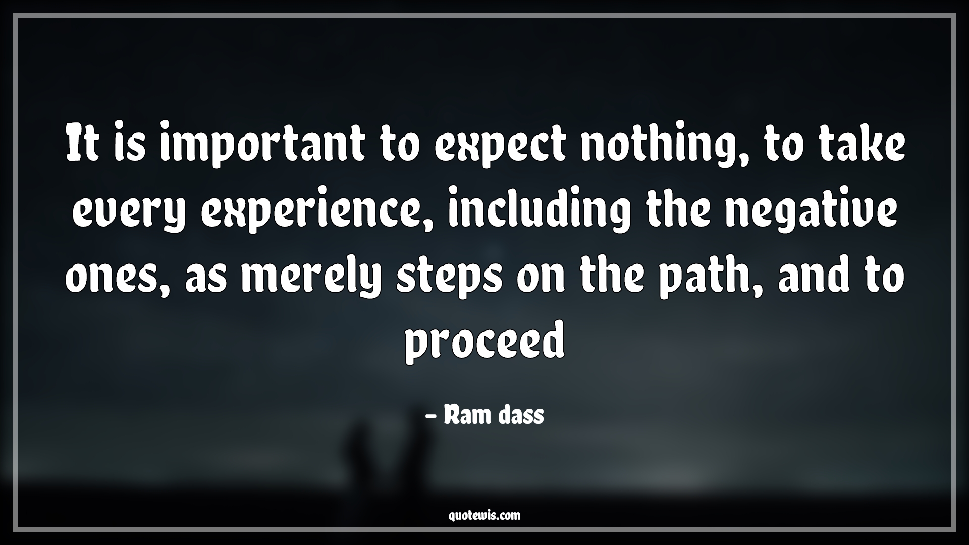 It is important to expect nothing, to take every experience, including the negative ones, as merely steps on the path, and to proceed