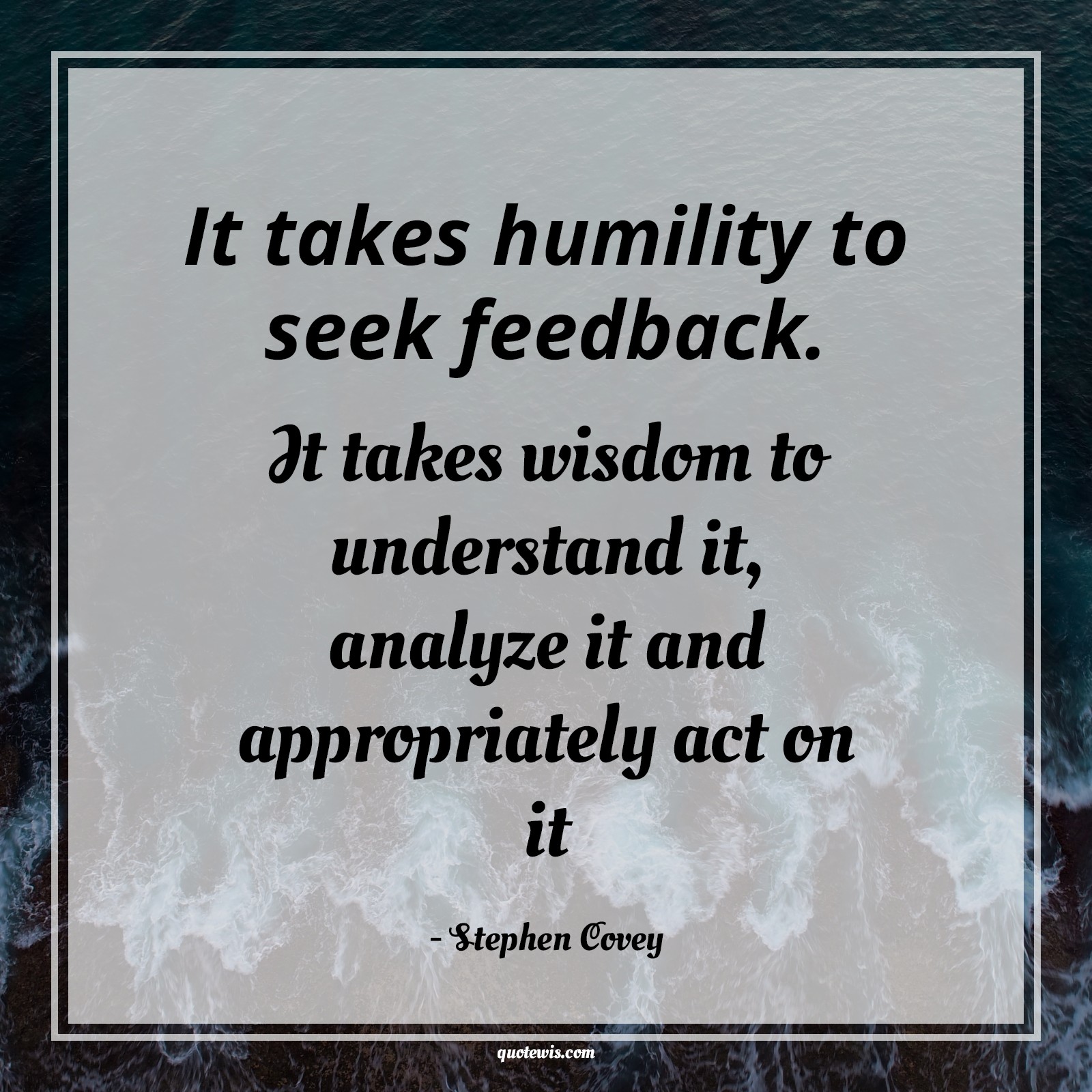 It takes humility to seek feedback. It takes wisdom to understand it, analyze it and appropriately act on it