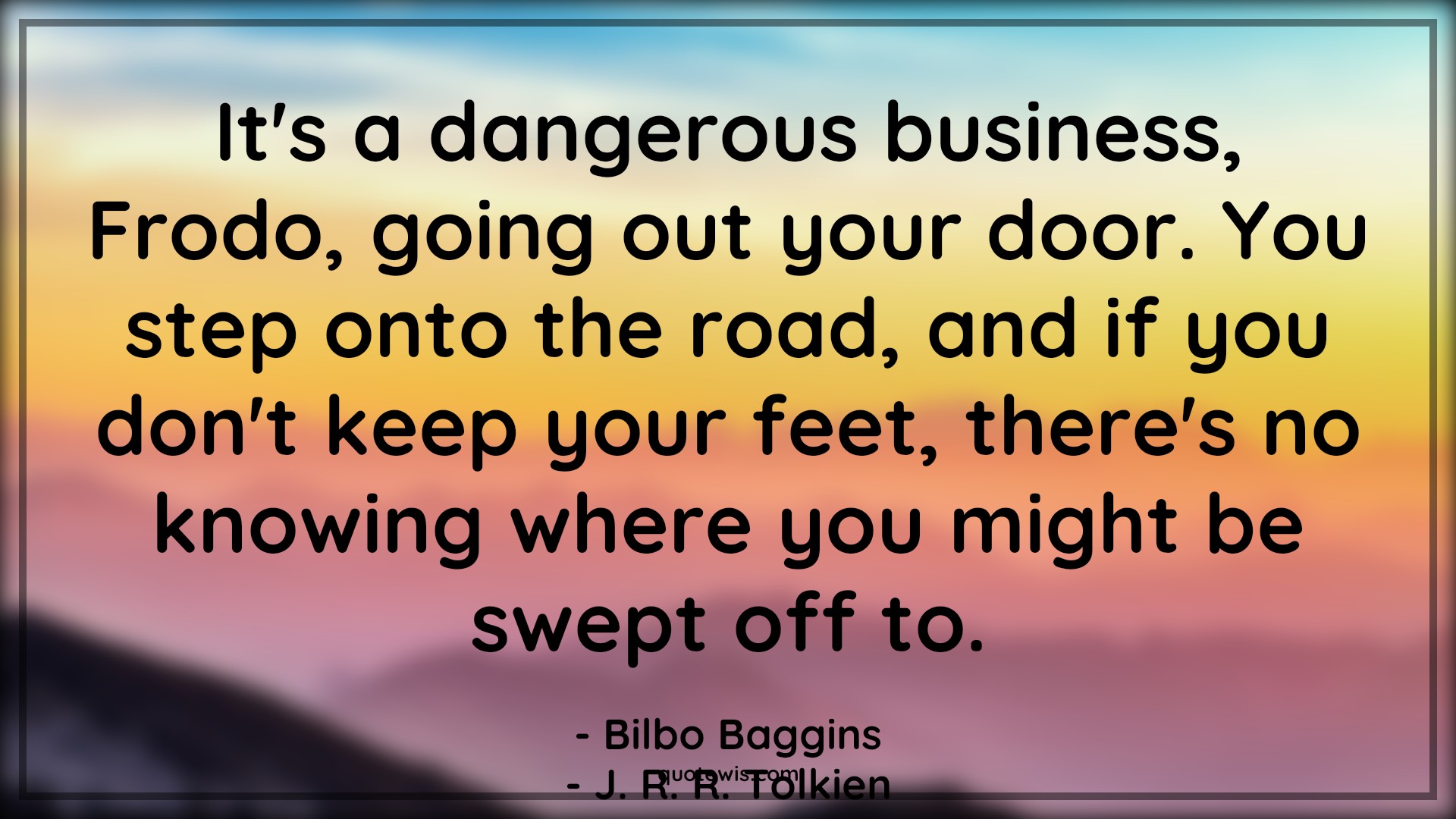 It's a dangerous business, Frodo, going out your door. You step onto the road, and if you don't keep your feet, there's no knowing where you might be swept off to.