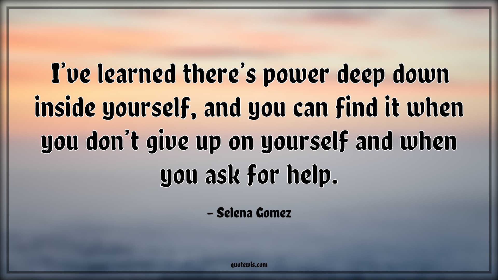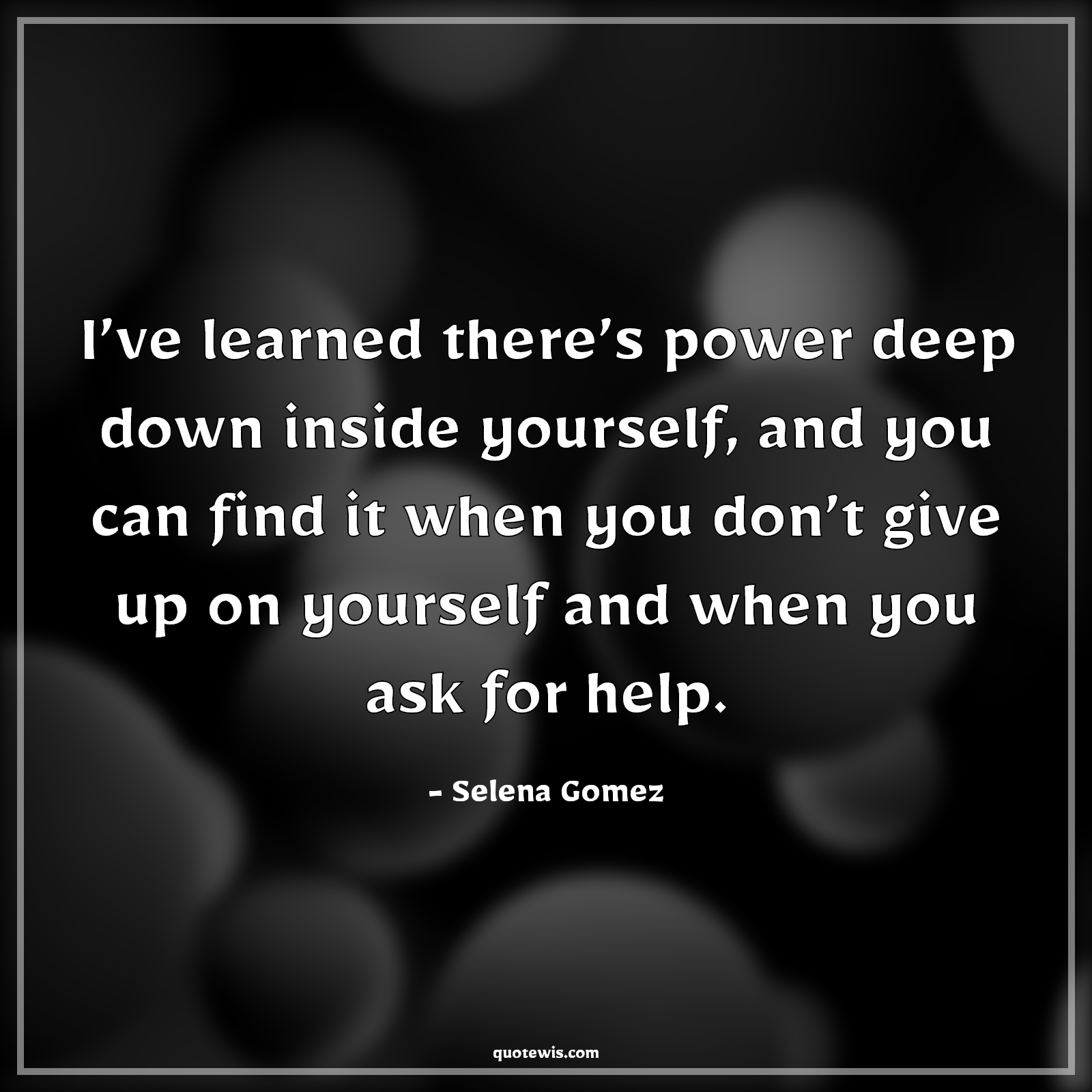 I’ve learned there’s power deep down inside yourself, and you can find it when you don’t give up on yourself and when you ask for help.