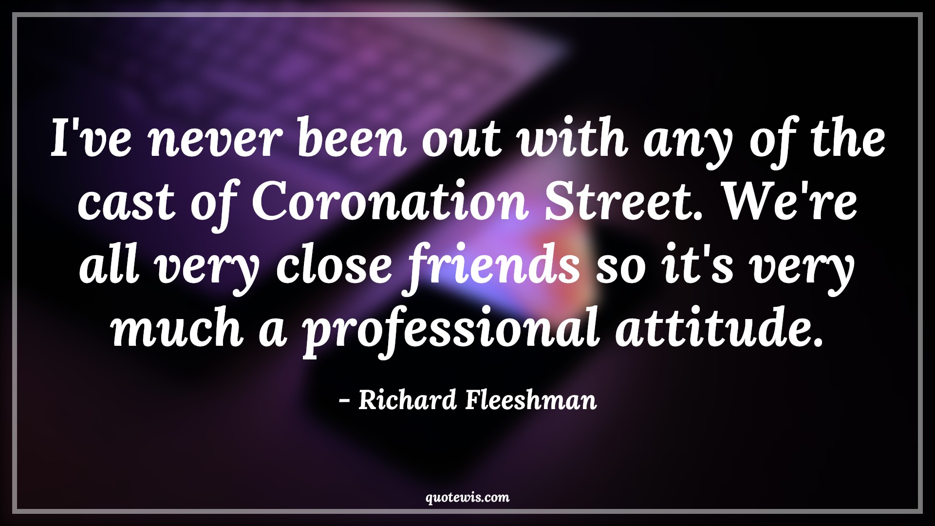 I've never been out with any of the cast of Coronation Street. We're all very close friends so it's very much a professional attitude.