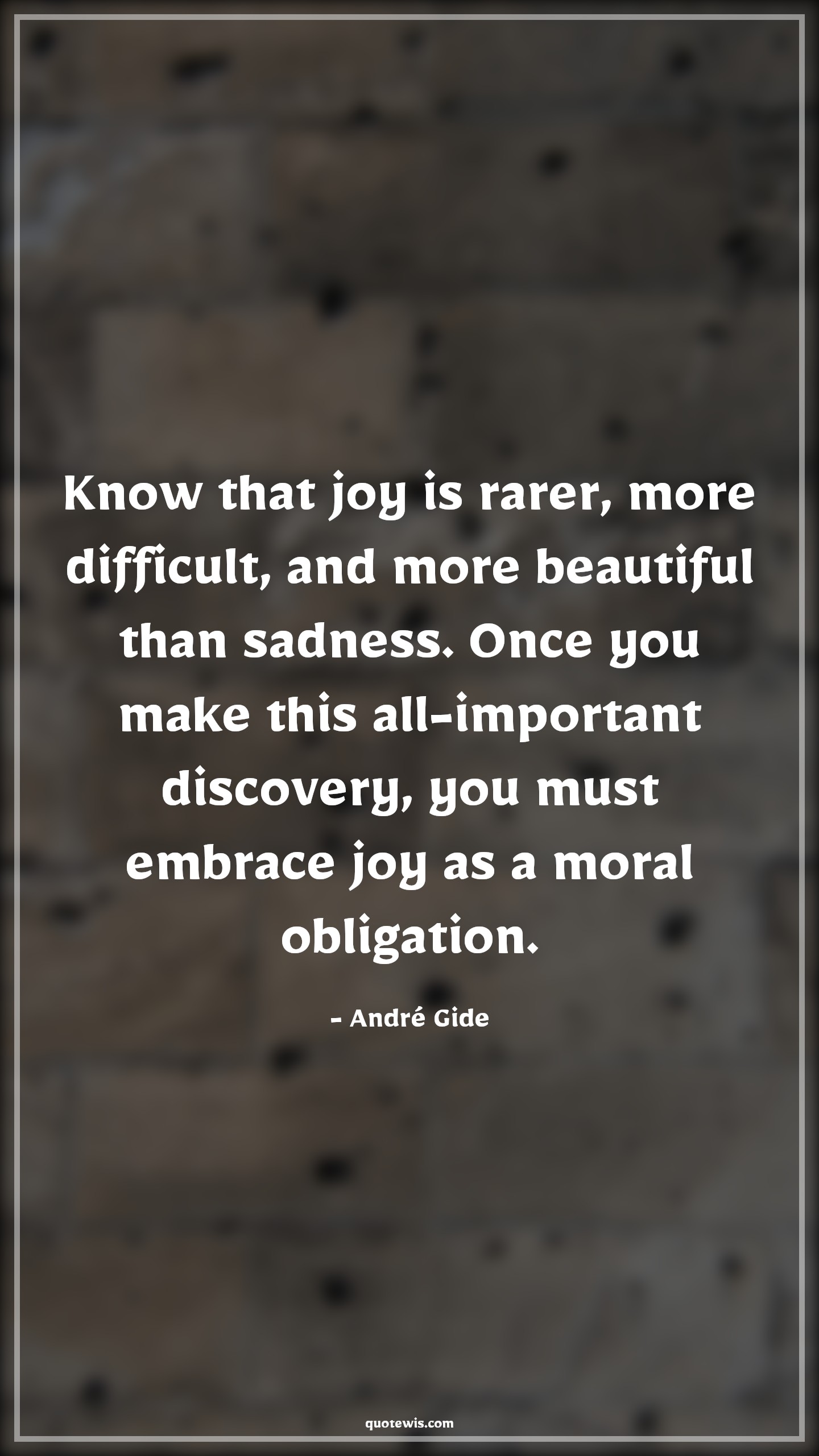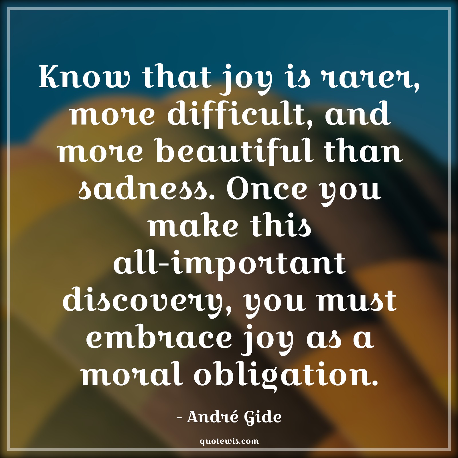 Know that joy is rarer, more difficult, and more beautiful than sadness. Once you make this all-important discovery, you must embrace joy as a moral obligation.