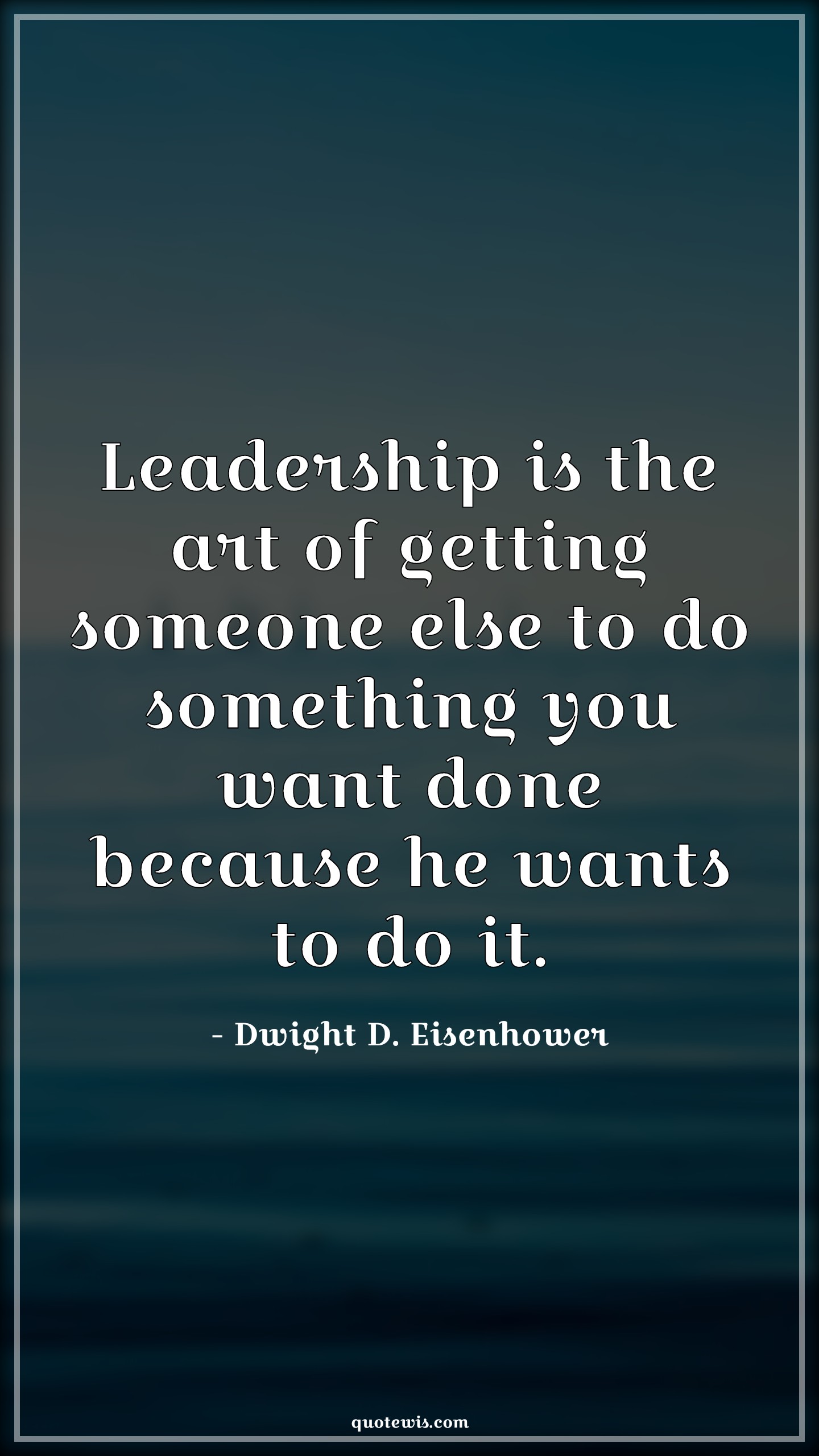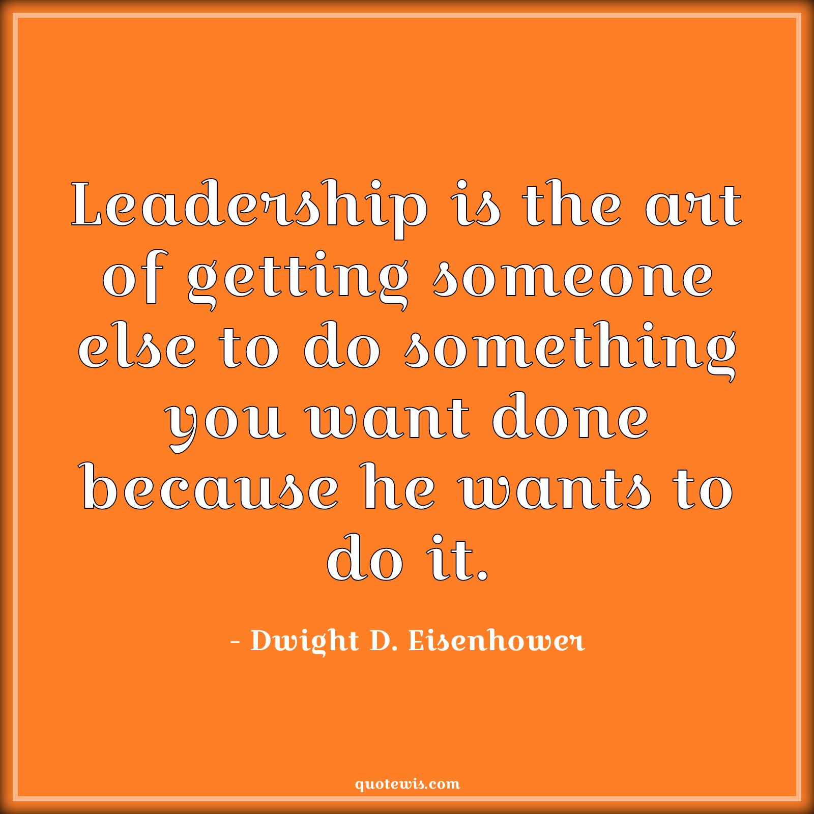 Leadership is the art of getting someone else to do something you want done because he wants to do it.