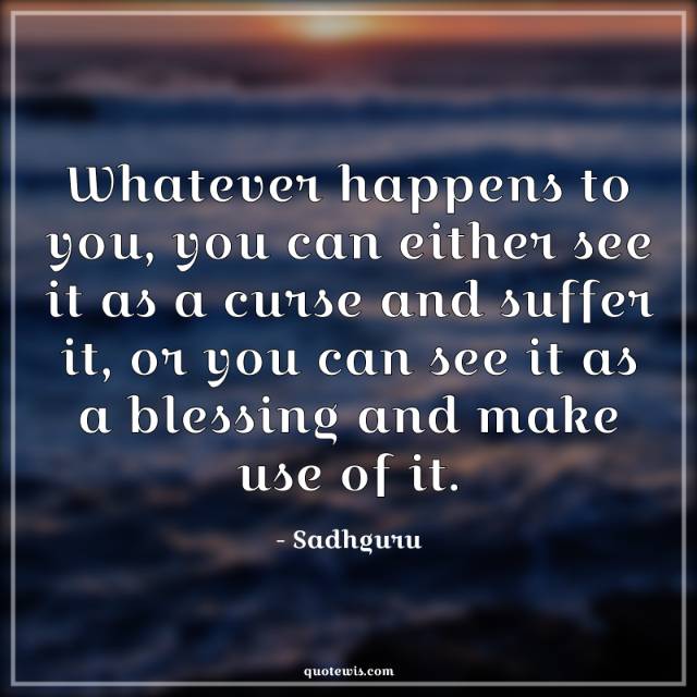 Whatever happens to you, you can either see it as a curse and suffer it, or you can see it as a blessing and make use of it.