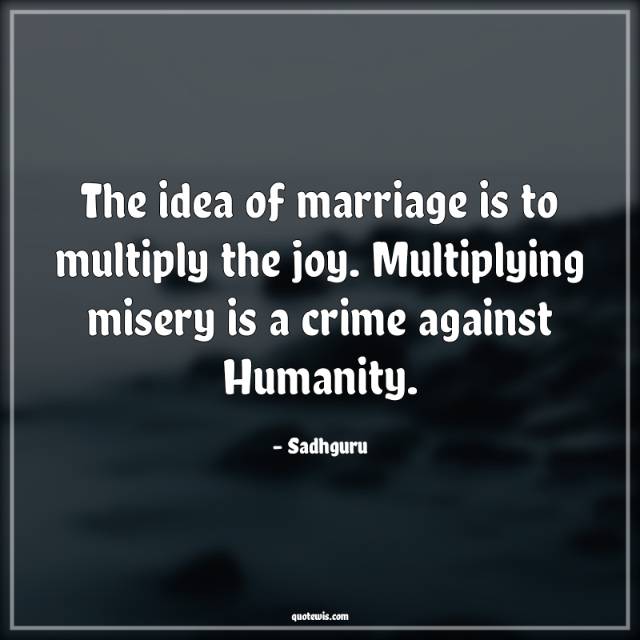 The idea of marriage is to multiply the joy. Multiplying misery is a crime against Humanity.