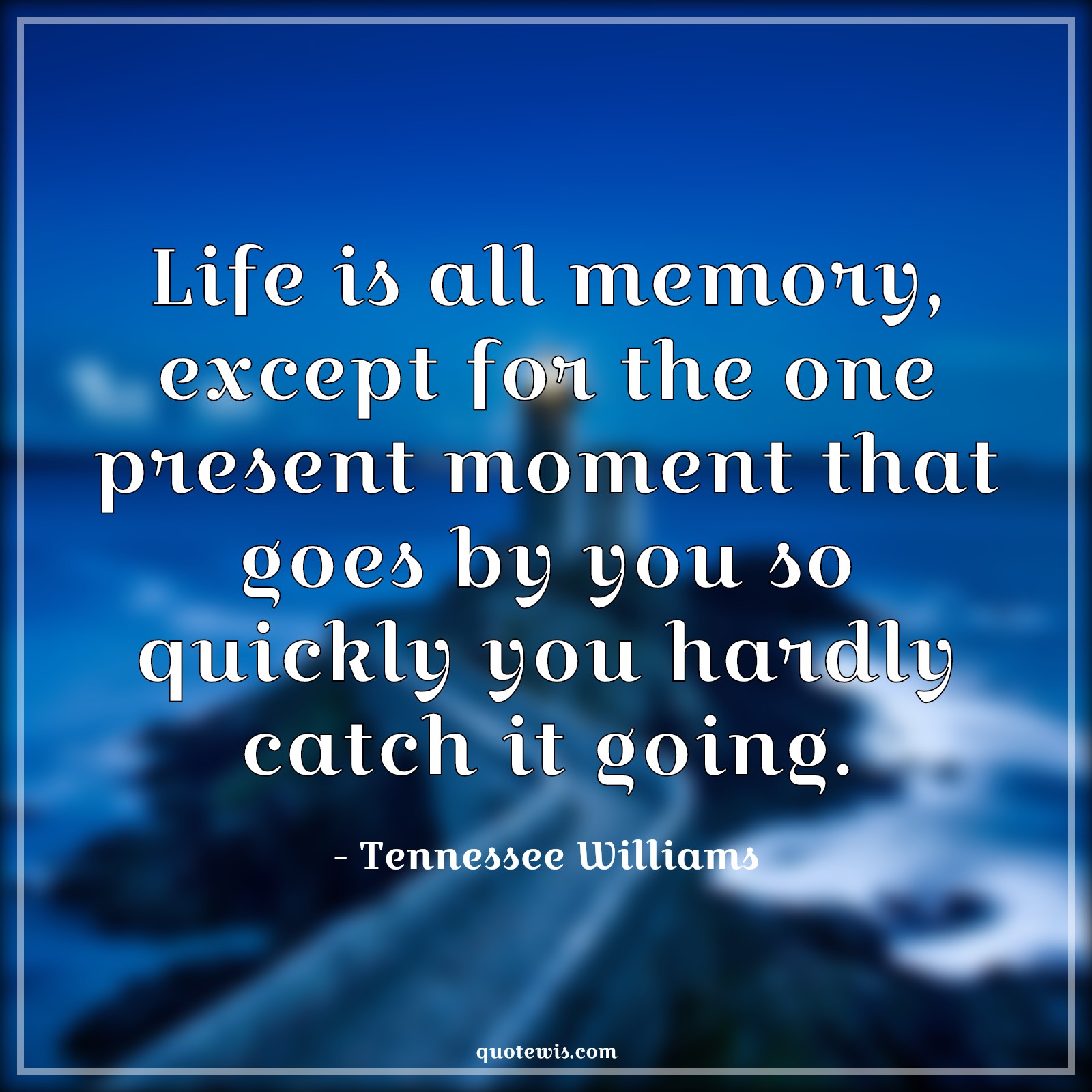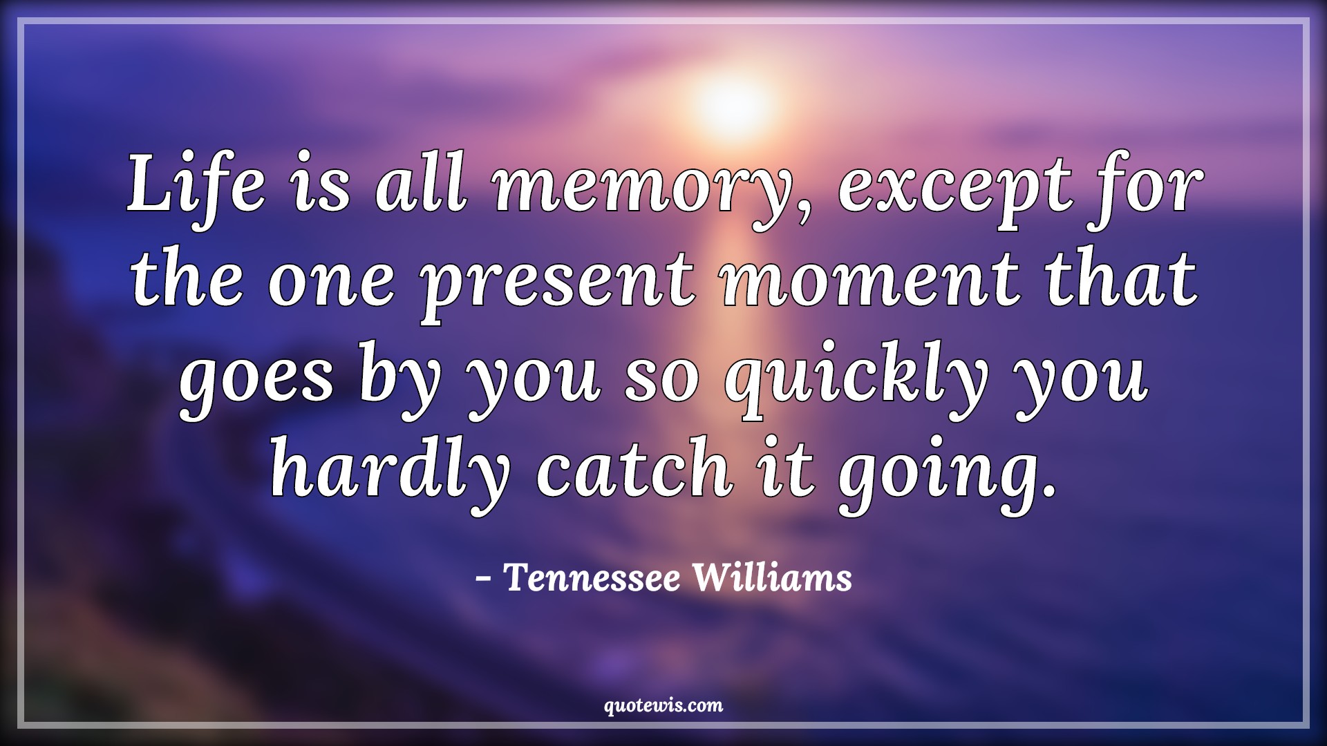 Life is all memory, except for the one present moment that goes by you so quickly you hardly catch it going.