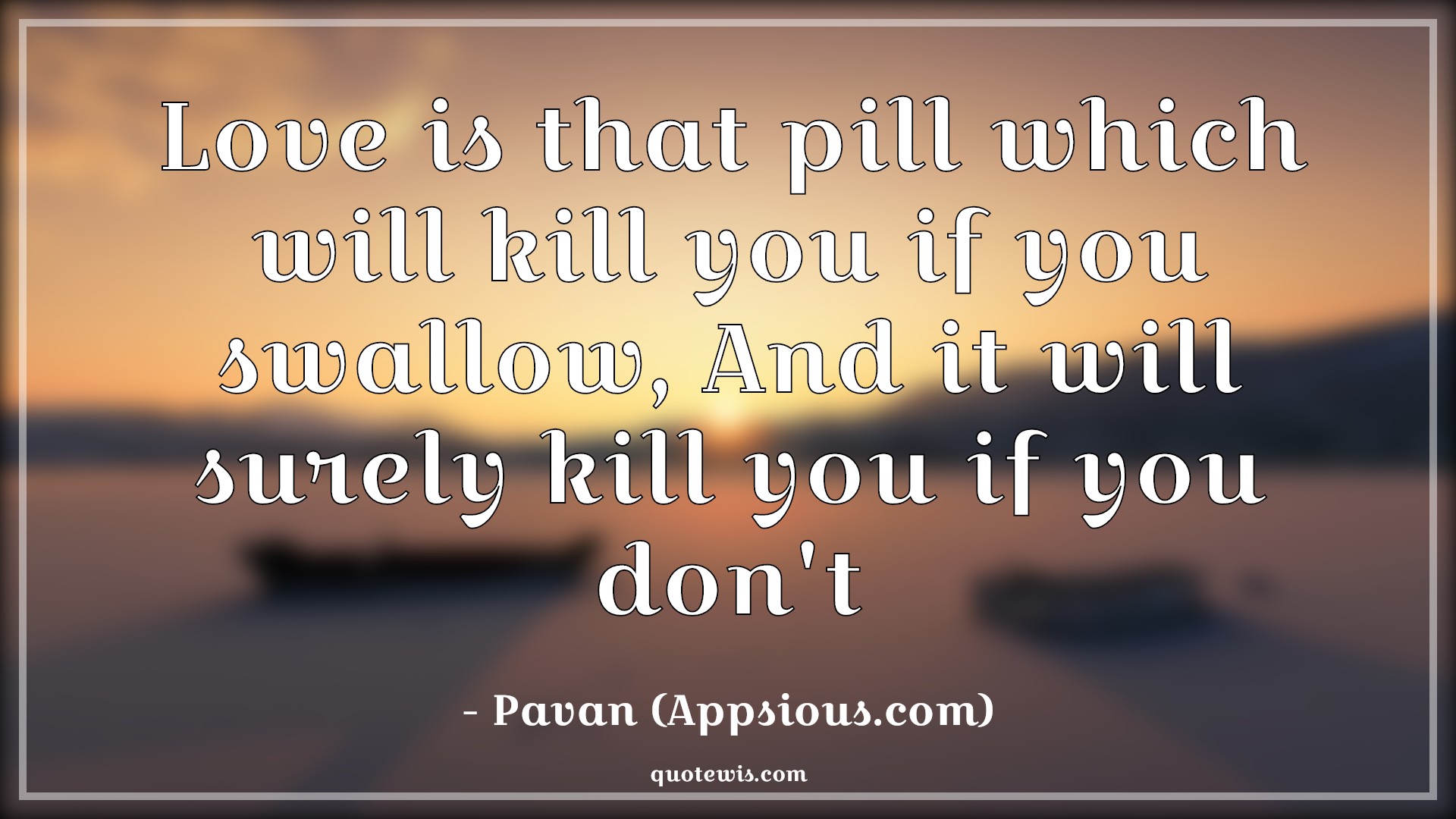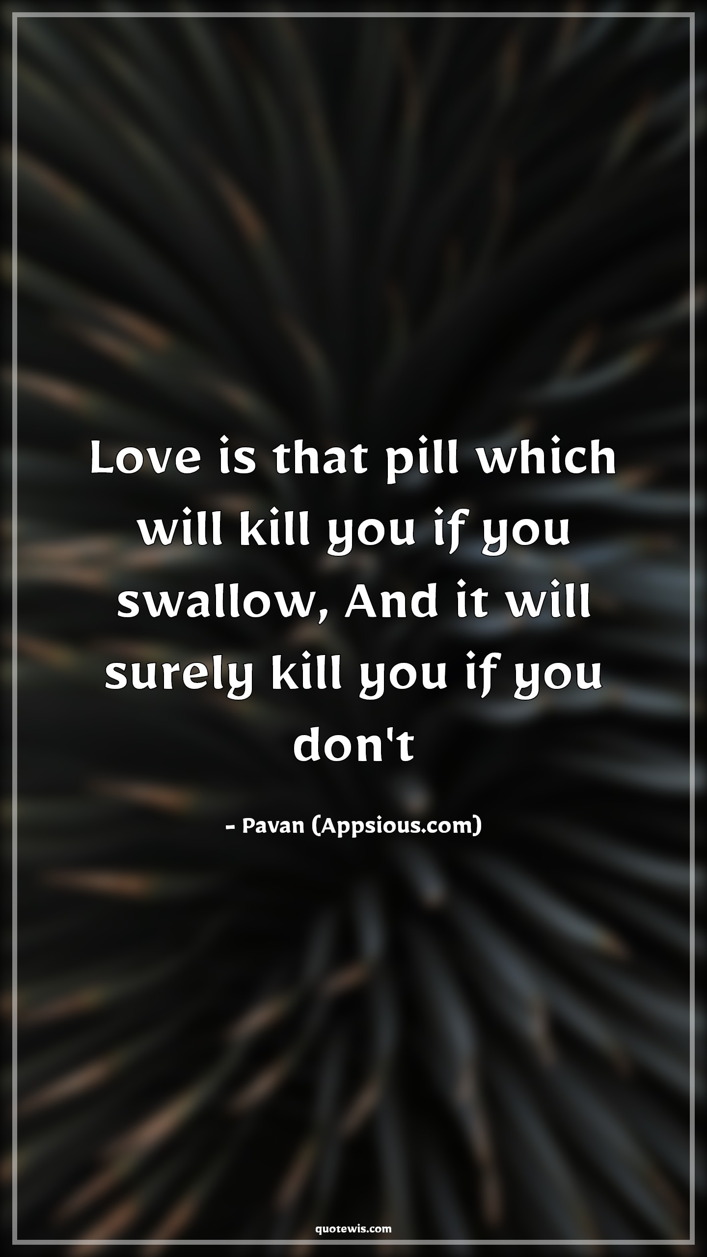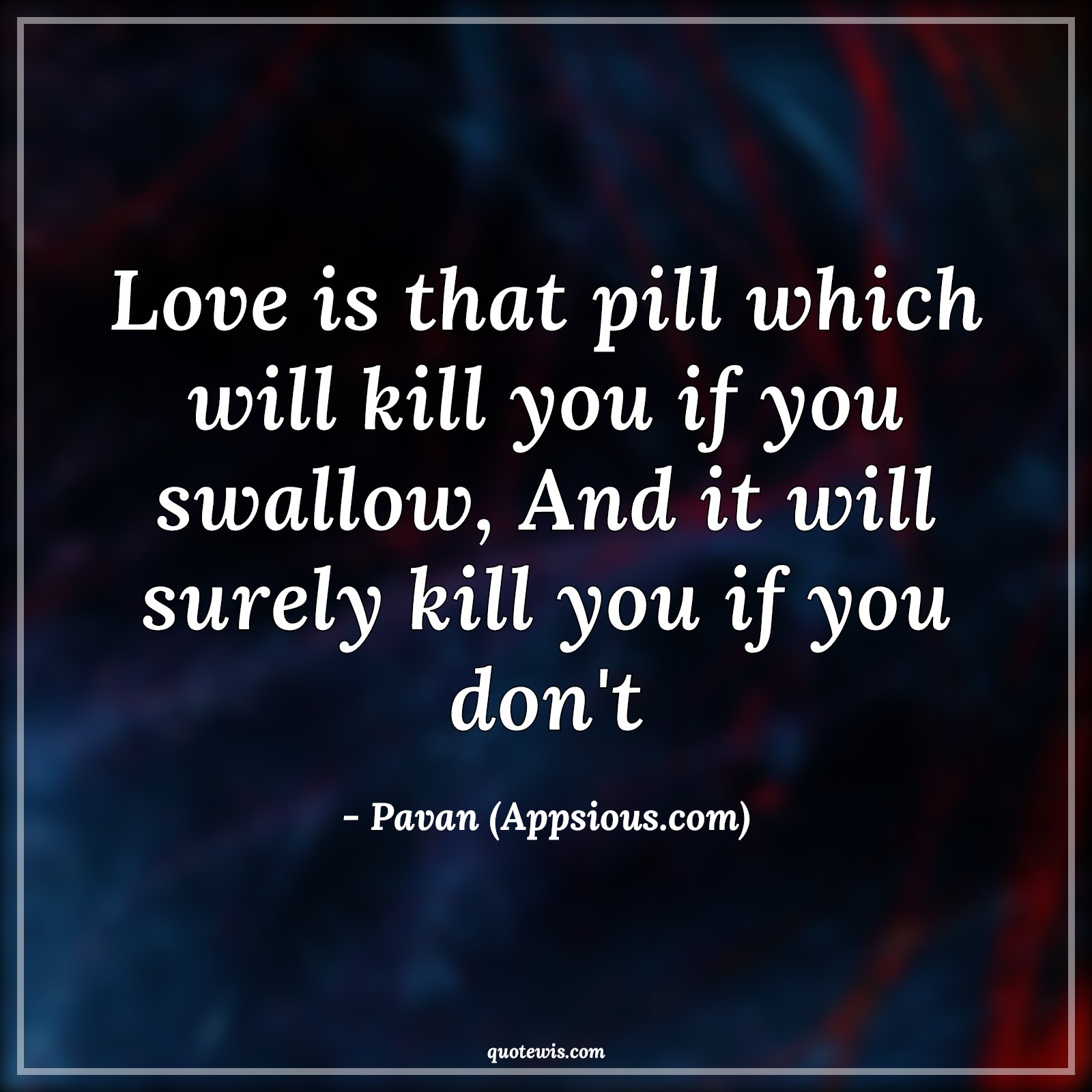 Love is that pill which will kill you if you swallow, And it will surely kill you if you don't