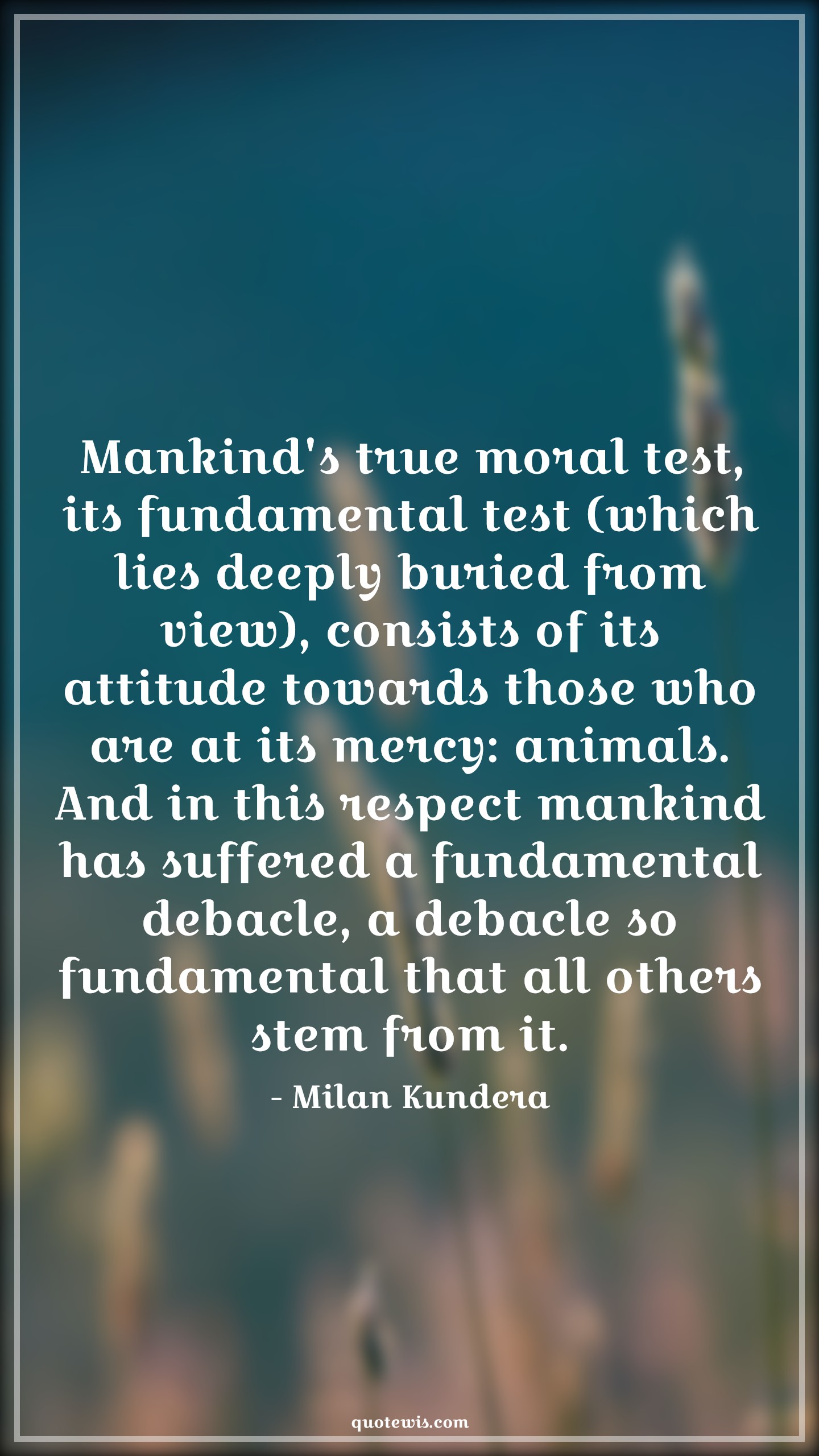 Mankind's true moral test, its fundamental test (which lies deeply buried from view), consists of its attitude towards those who are at its mercy: animals. And in this respect mankind has suffered a fundamental debacle, a debacle so fundamental that all others stem from it.