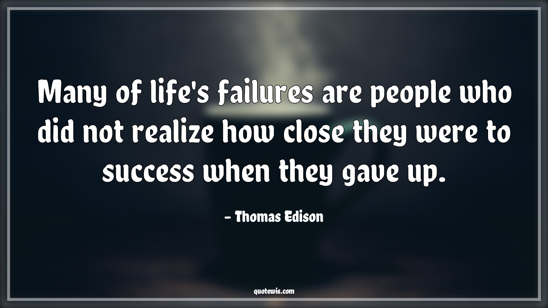 Many of life's failures are people who did not realize how close they were to success when they gave up.