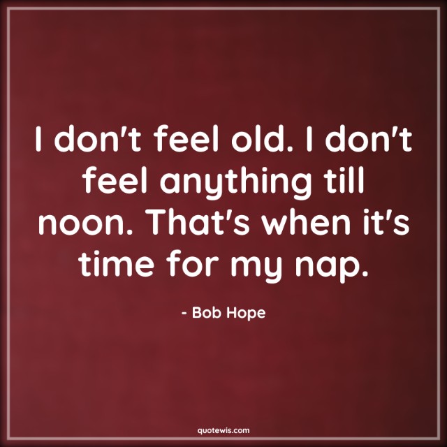 I don't feel old. I don't feel anything till noon. That's when it's time for my nap.
