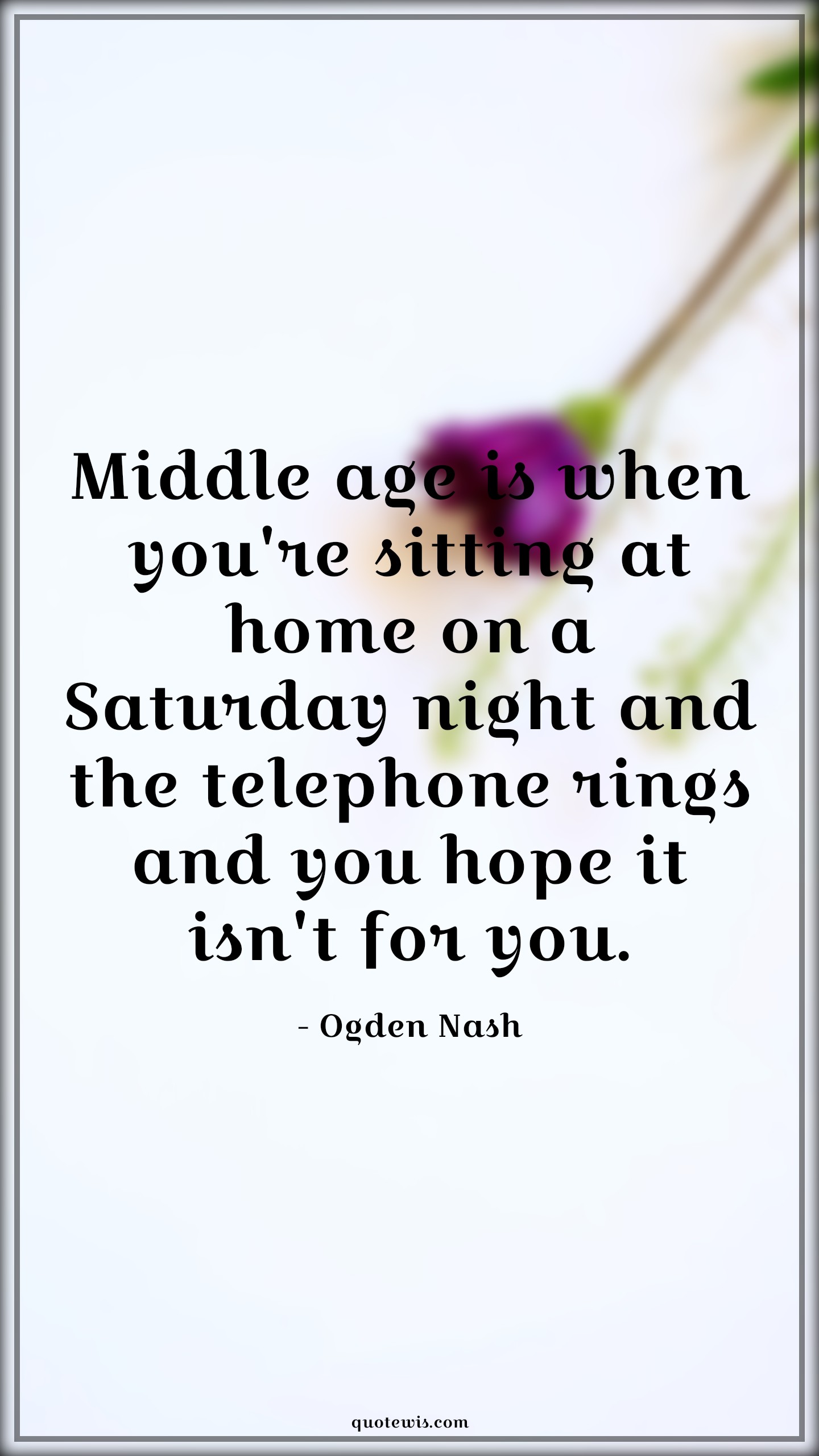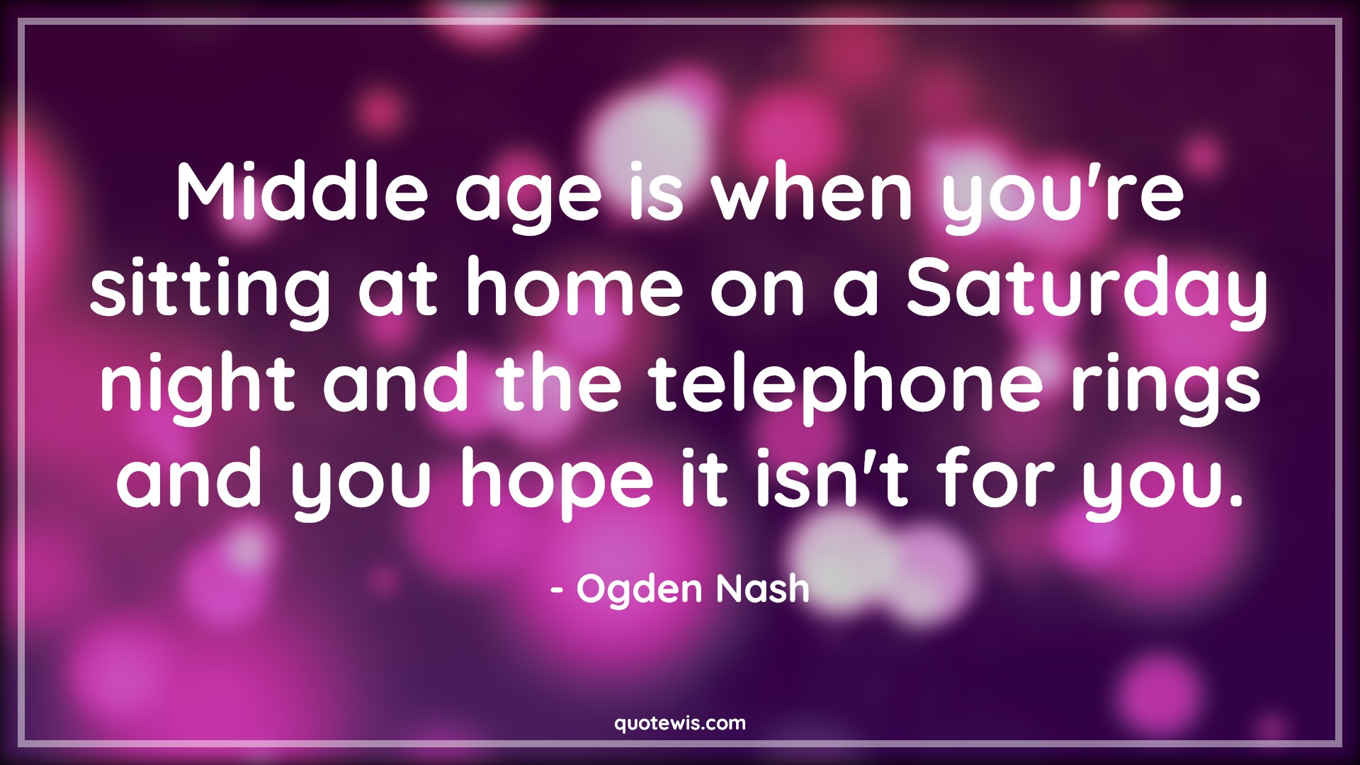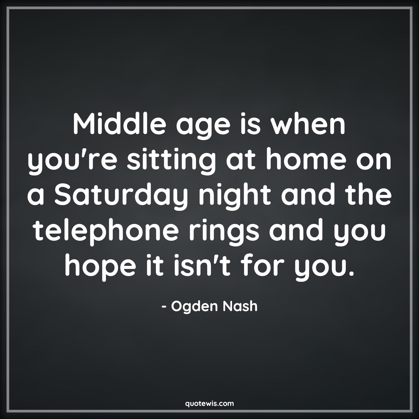 Middle age is when you're sitting at home on a Saturday night and the telephone rings and you hope it isn't for you.