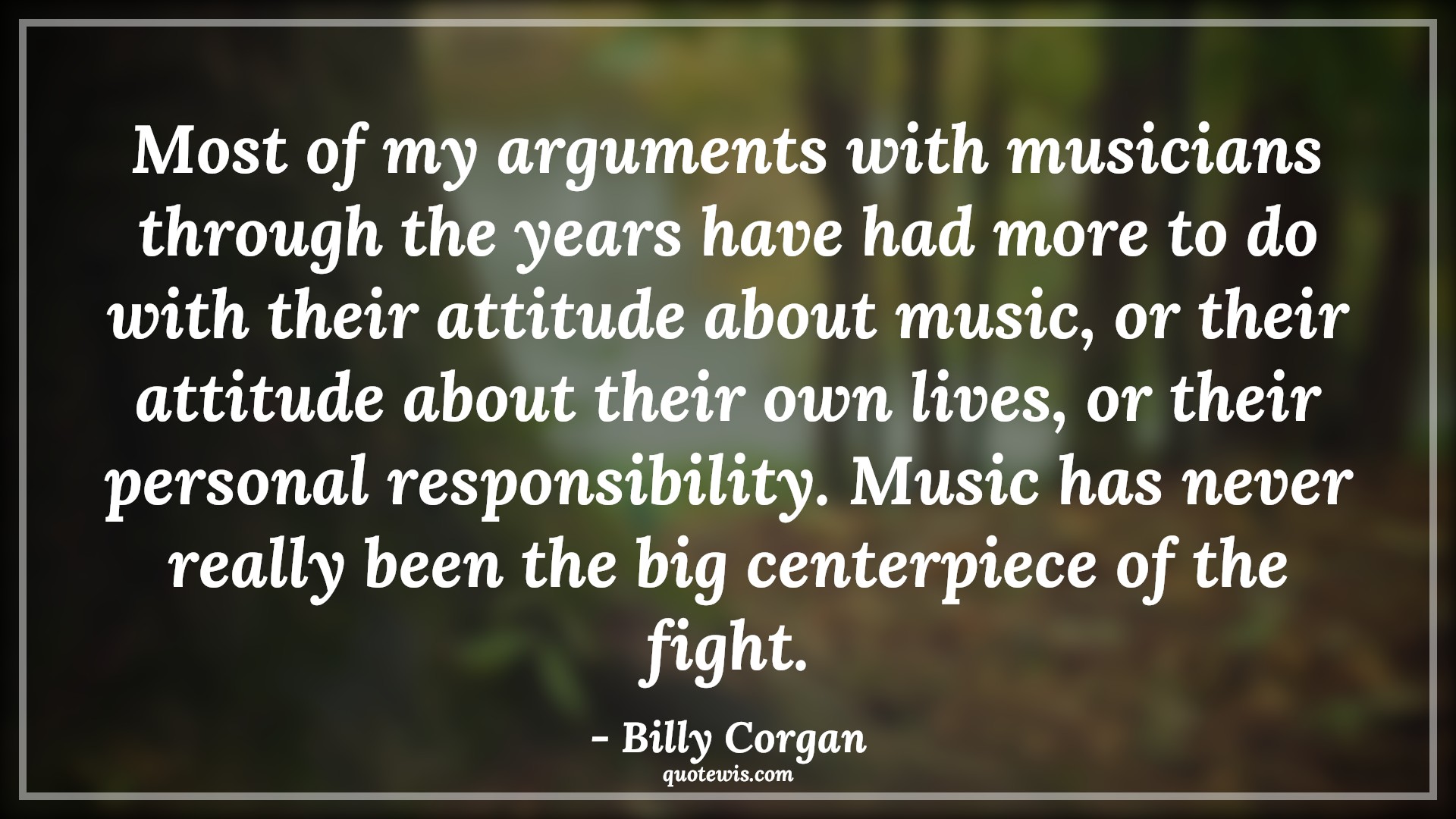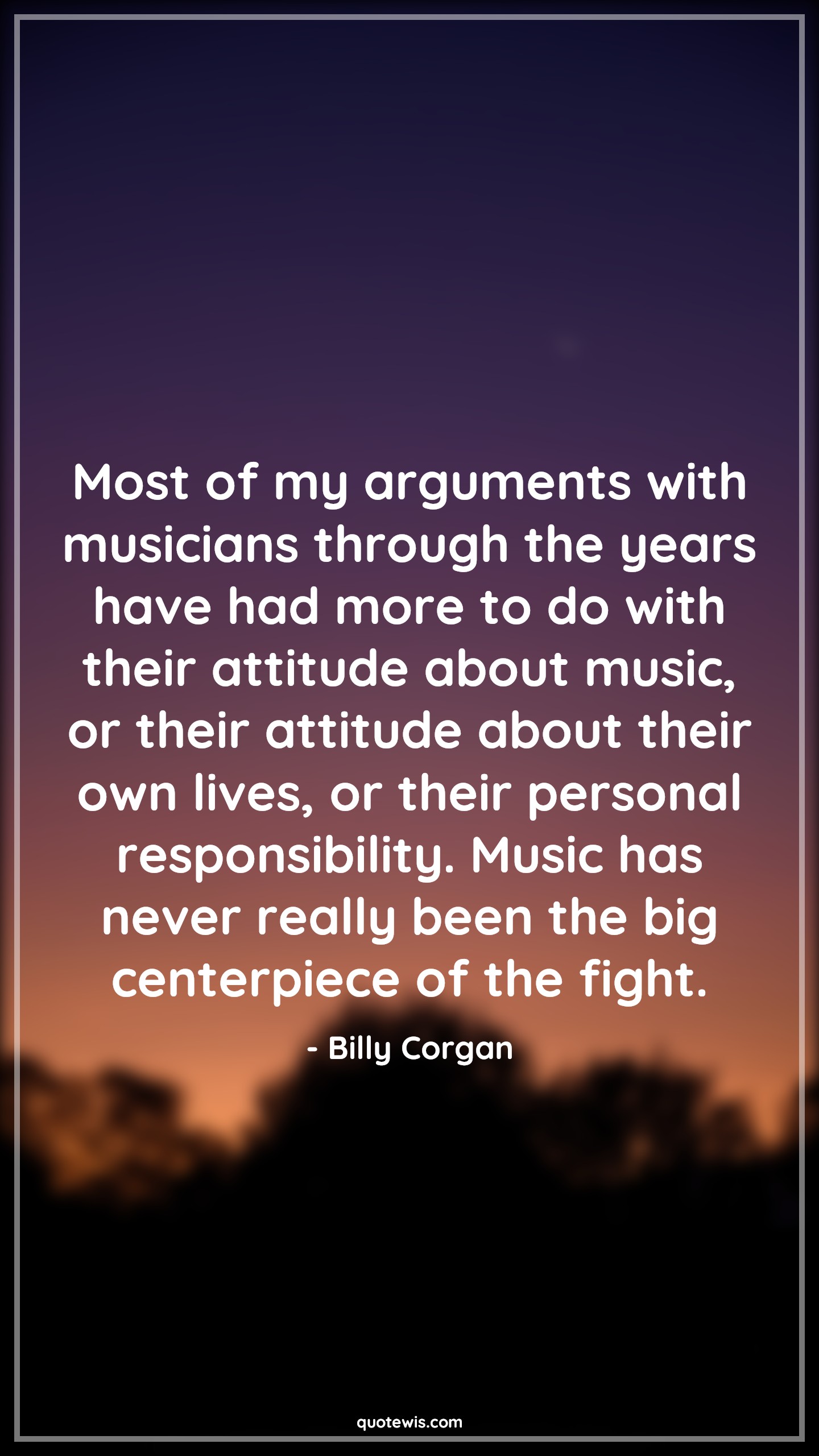 Most of my arguments with musicians through the years have had more to do with their attitude about music, or their attitude about their own lives, or their personal responsibility. Music has never really been the big centerpiece of the fight.