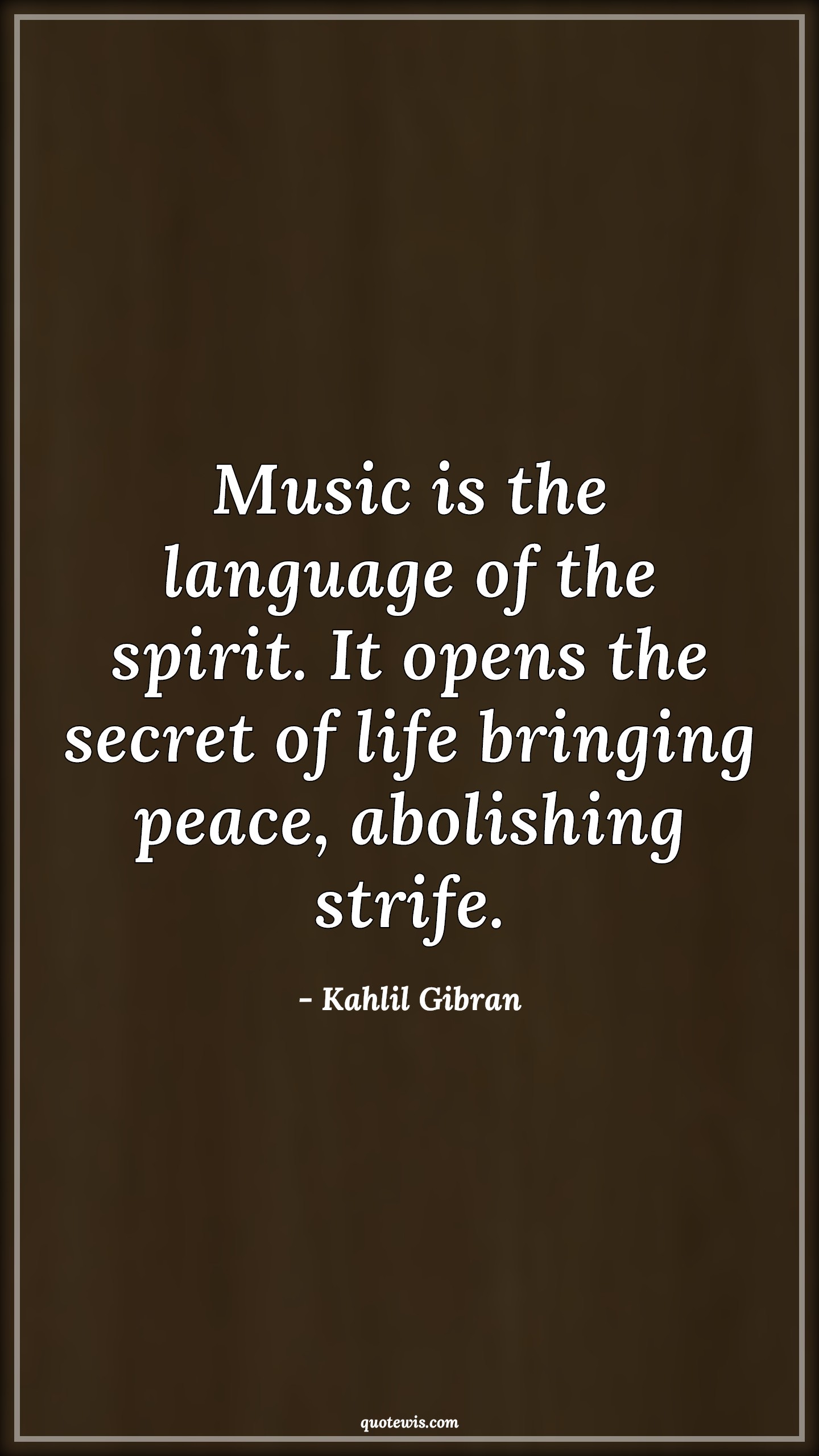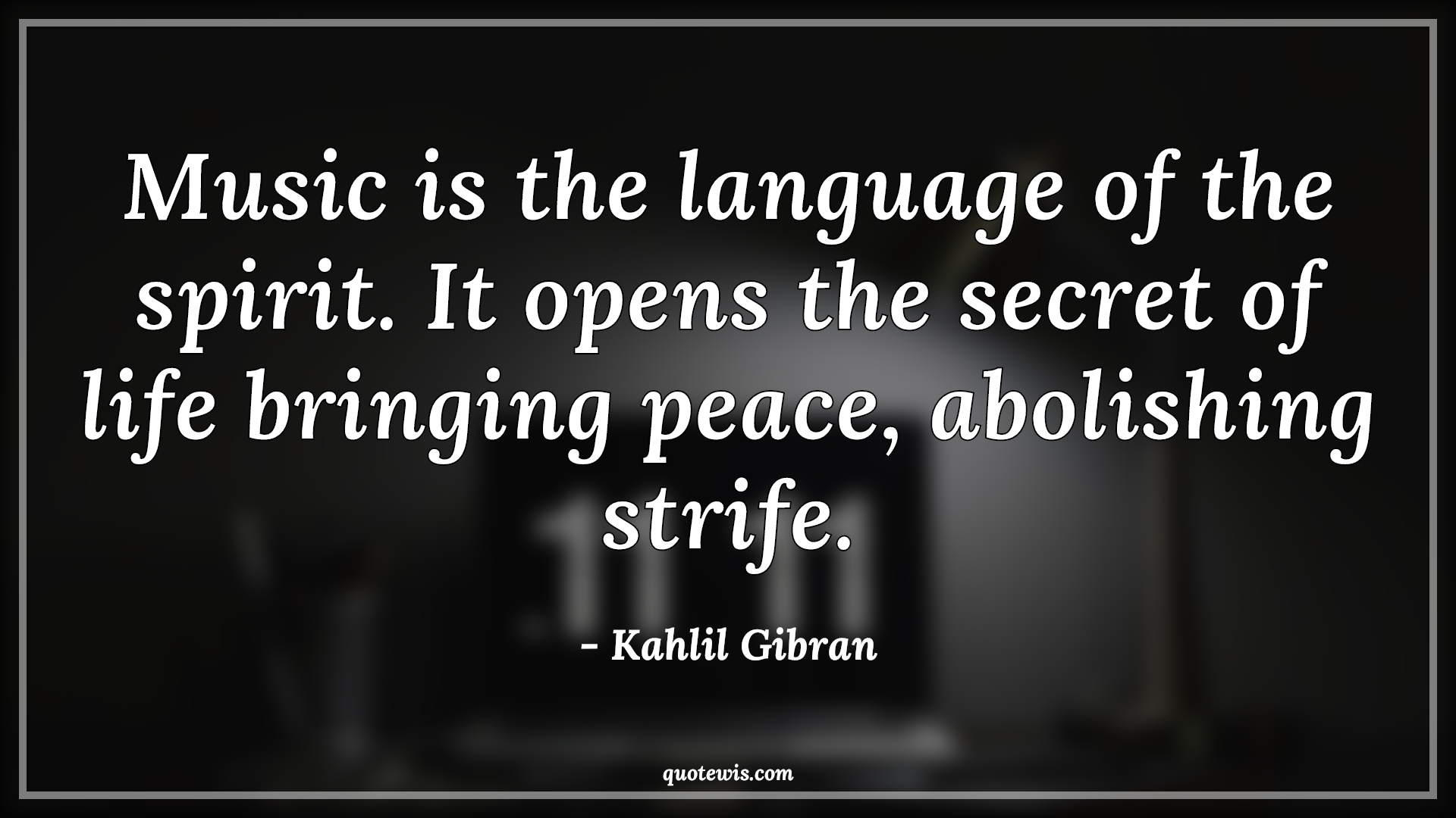 Music is the language of the spirit. It opens the secret of life bringing peace, abolishing strife.